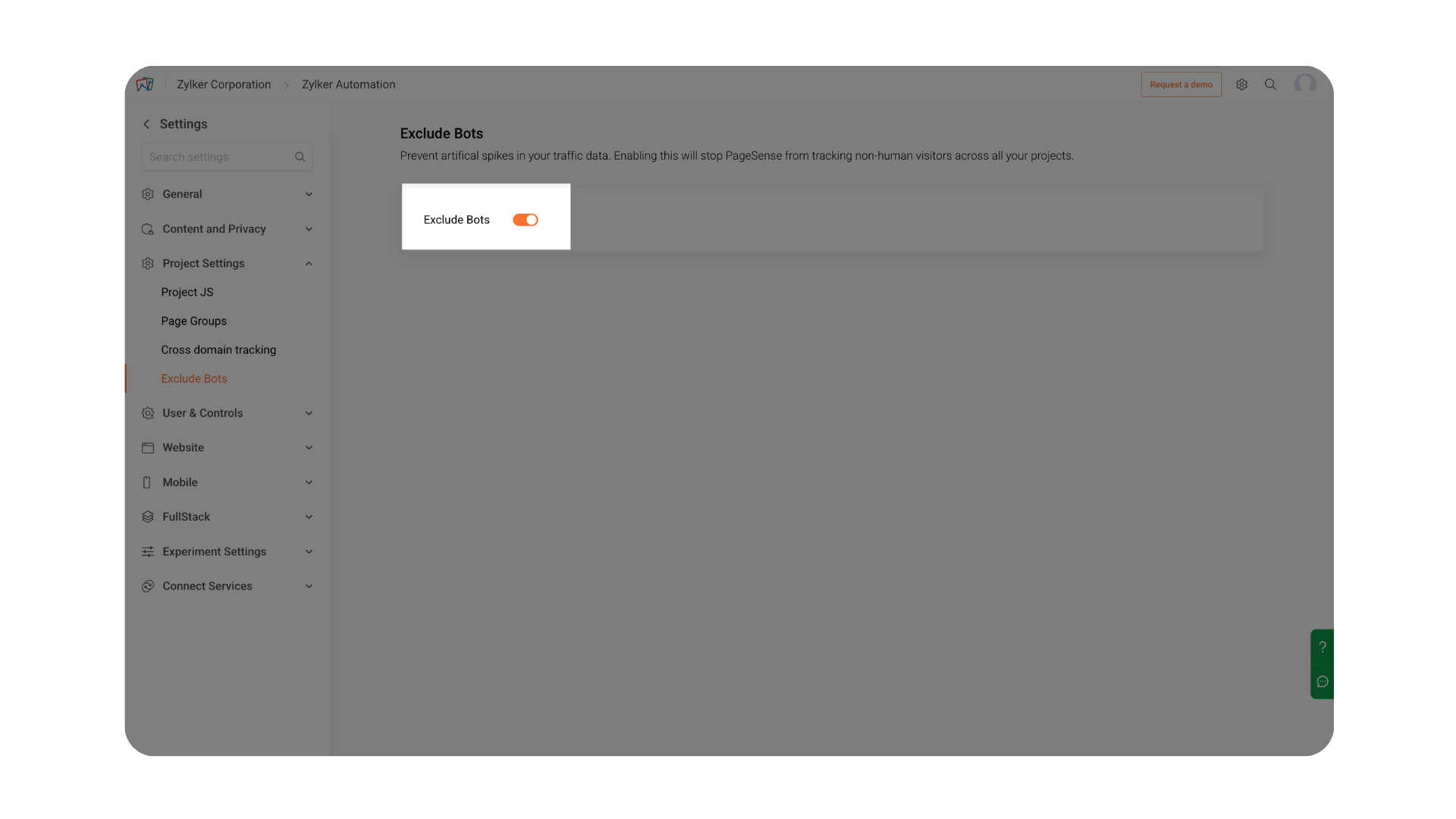 When this option is enabled, PageSense automatically detects and filters out known bot traffic and automated visitors from your tracking data.
