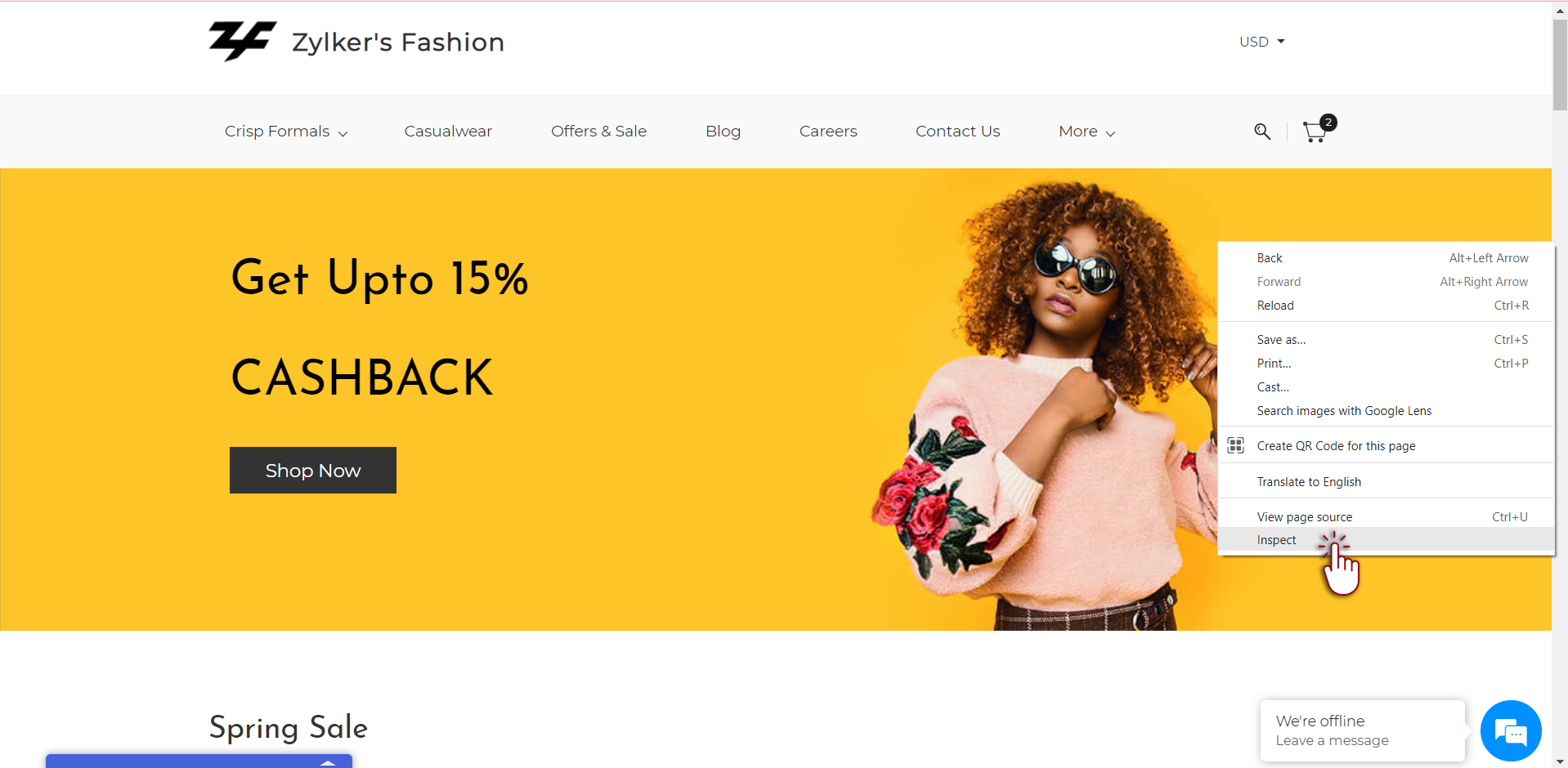 2. Open your website on a browser, right-click on the page and choose Inspect from the menu.
