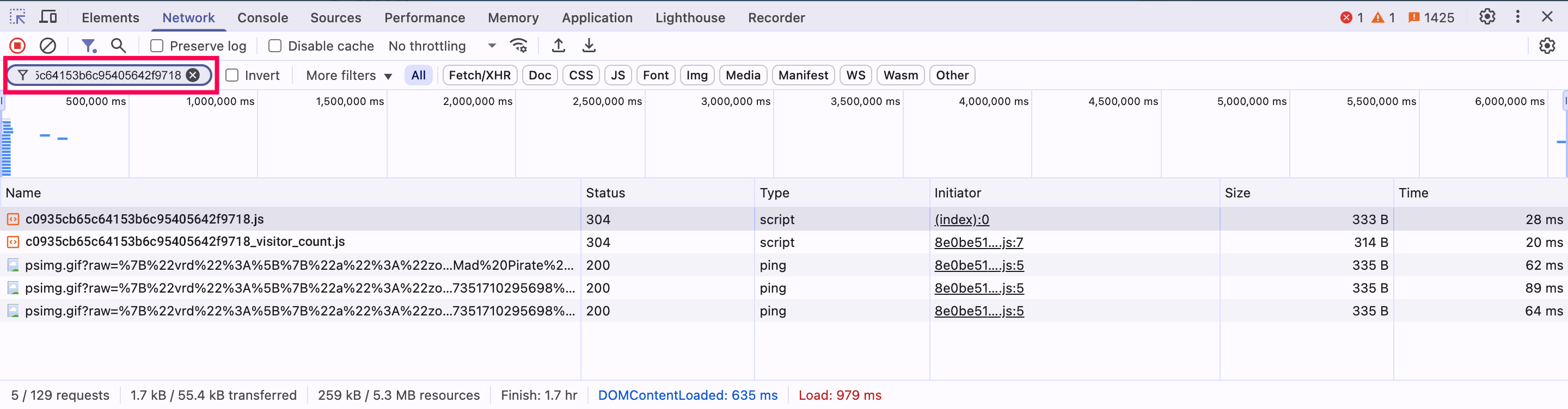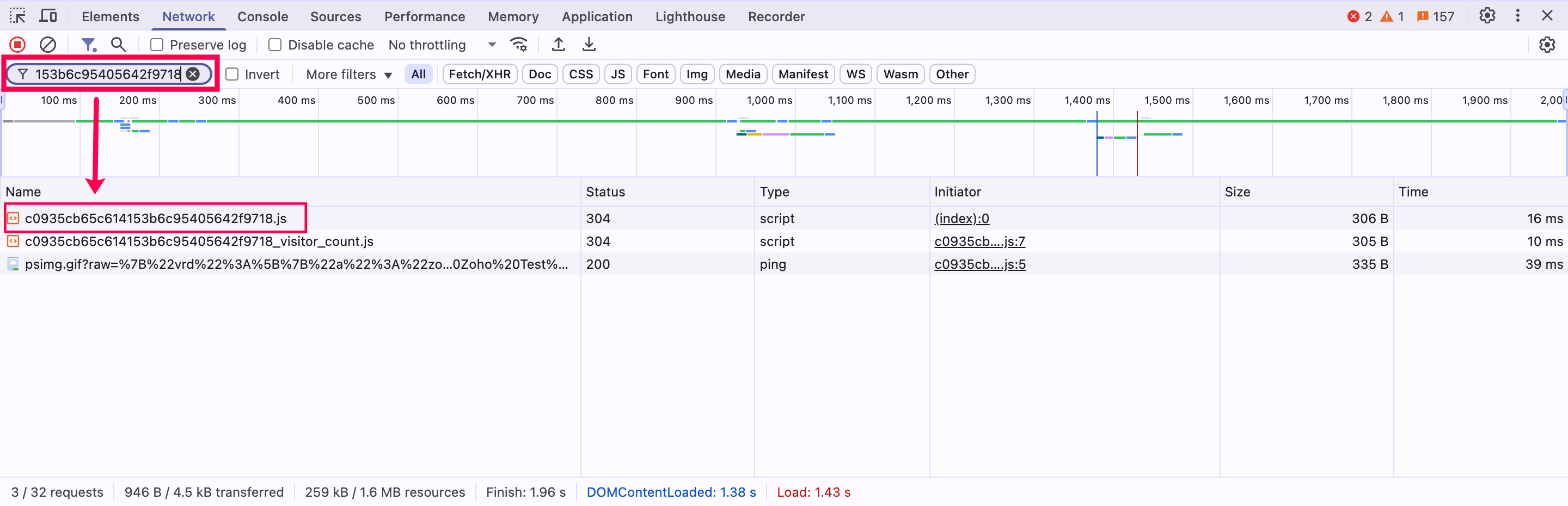 3. Now, click the Network tab and paste the Project key within the Filters textbox as shown in the figure.
