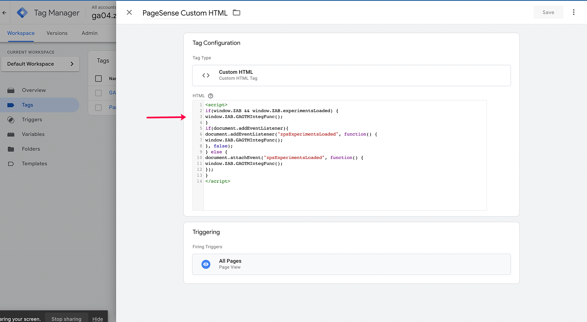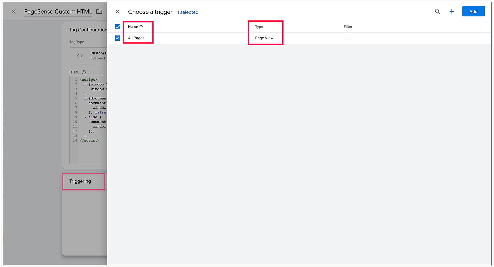 5. Under Triggering, select All Pages with the trigger type as Page View.