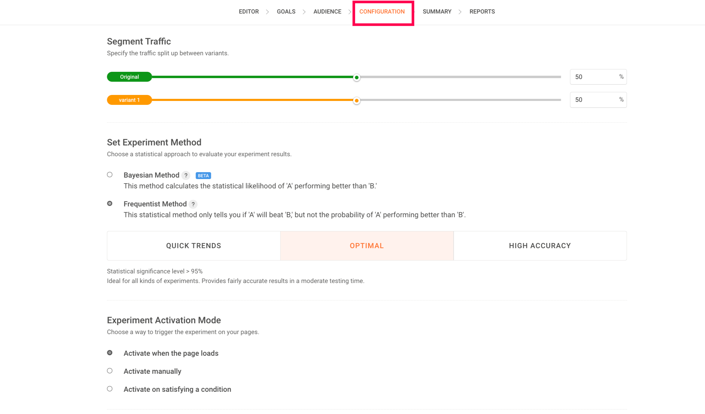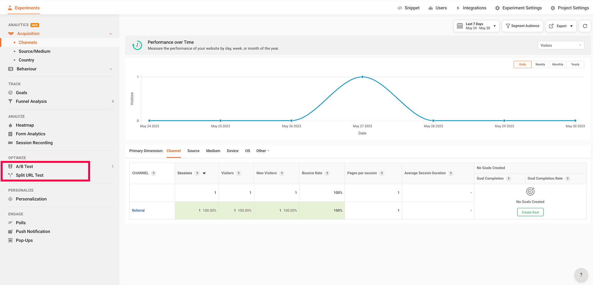 1. In the left panel, click either A/B Test or Split URL Test, then choose the experiment report you would like to view in detail.