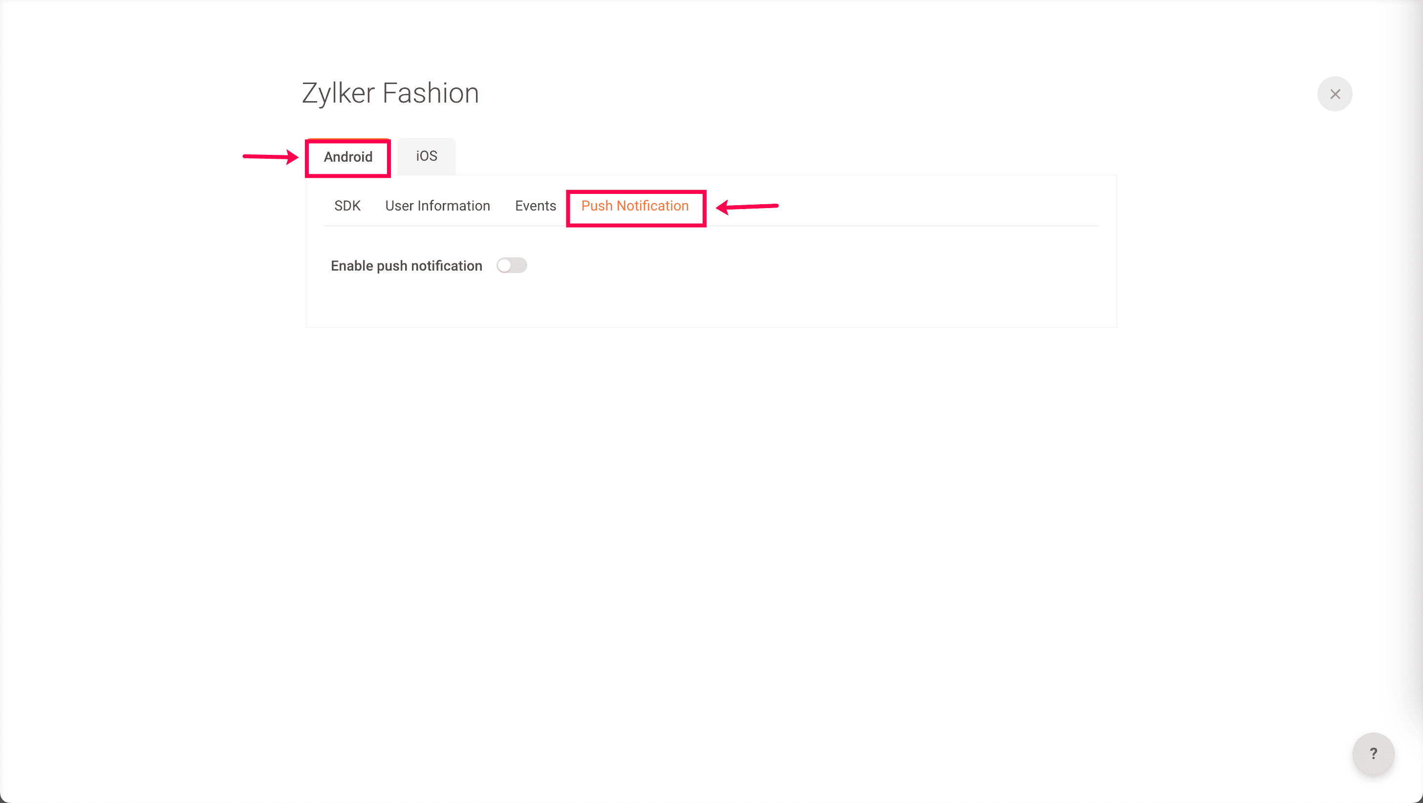4: Under Android, click Push Notification.