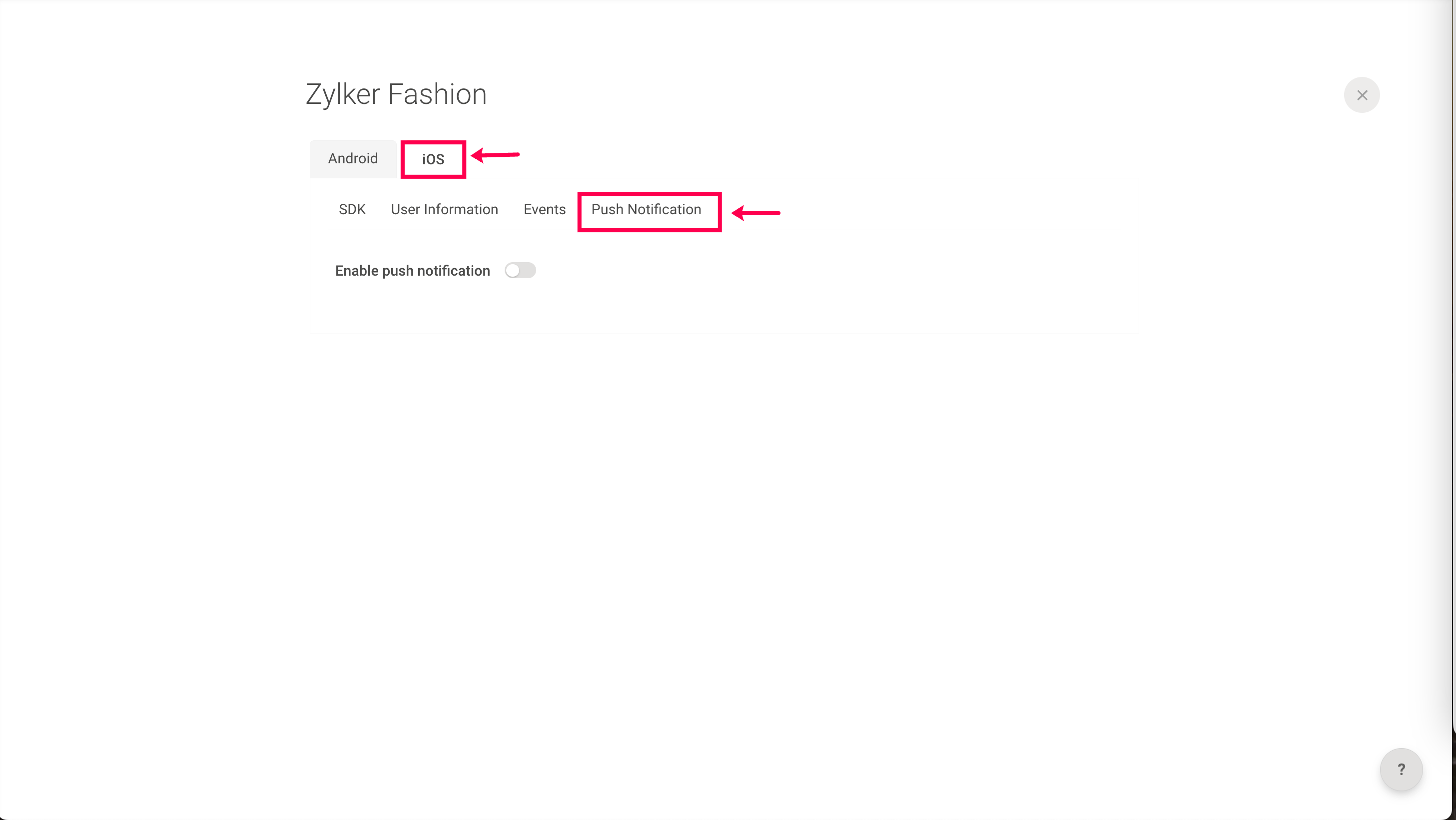 3: Under iOS, click Push Notification.