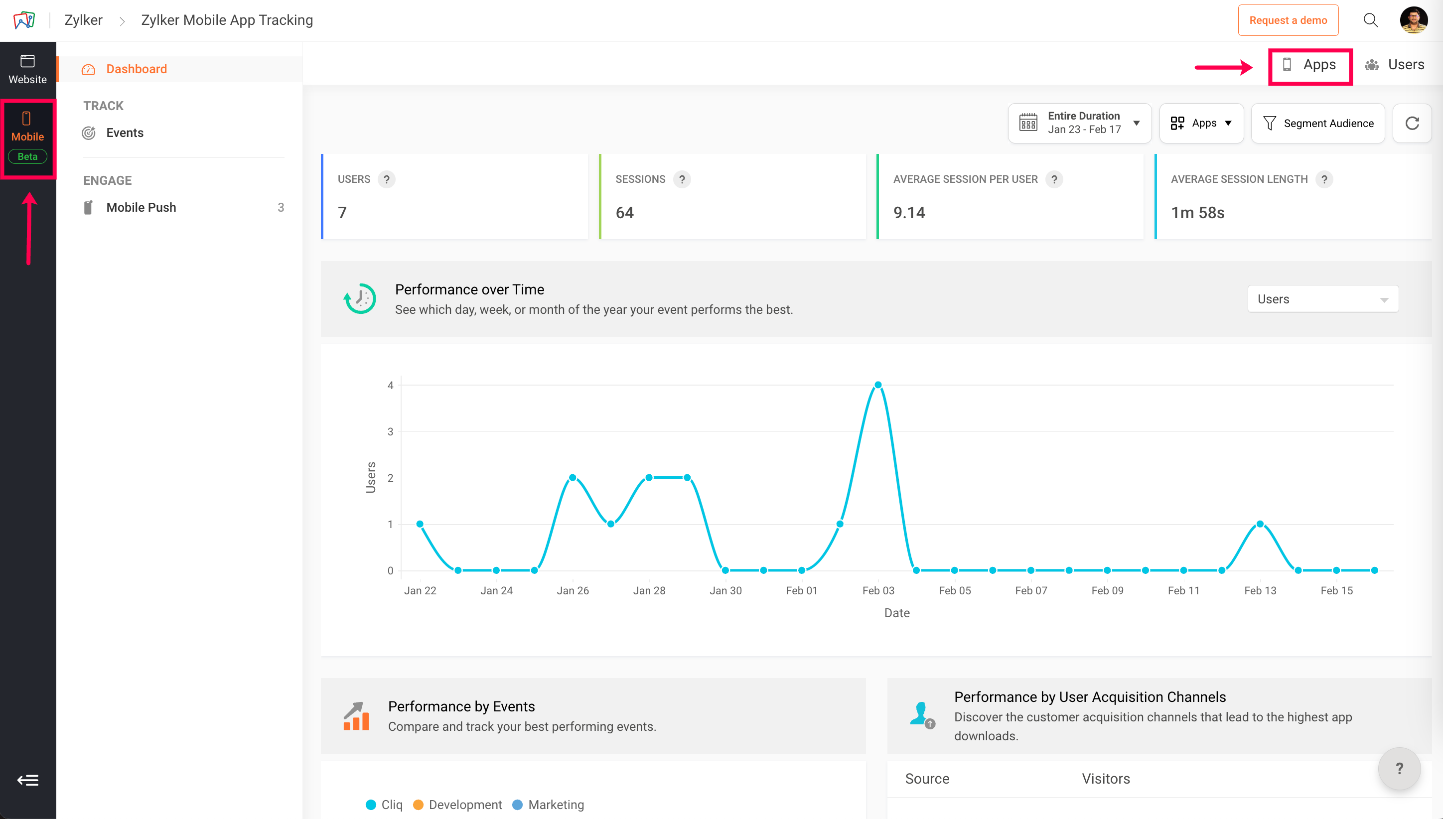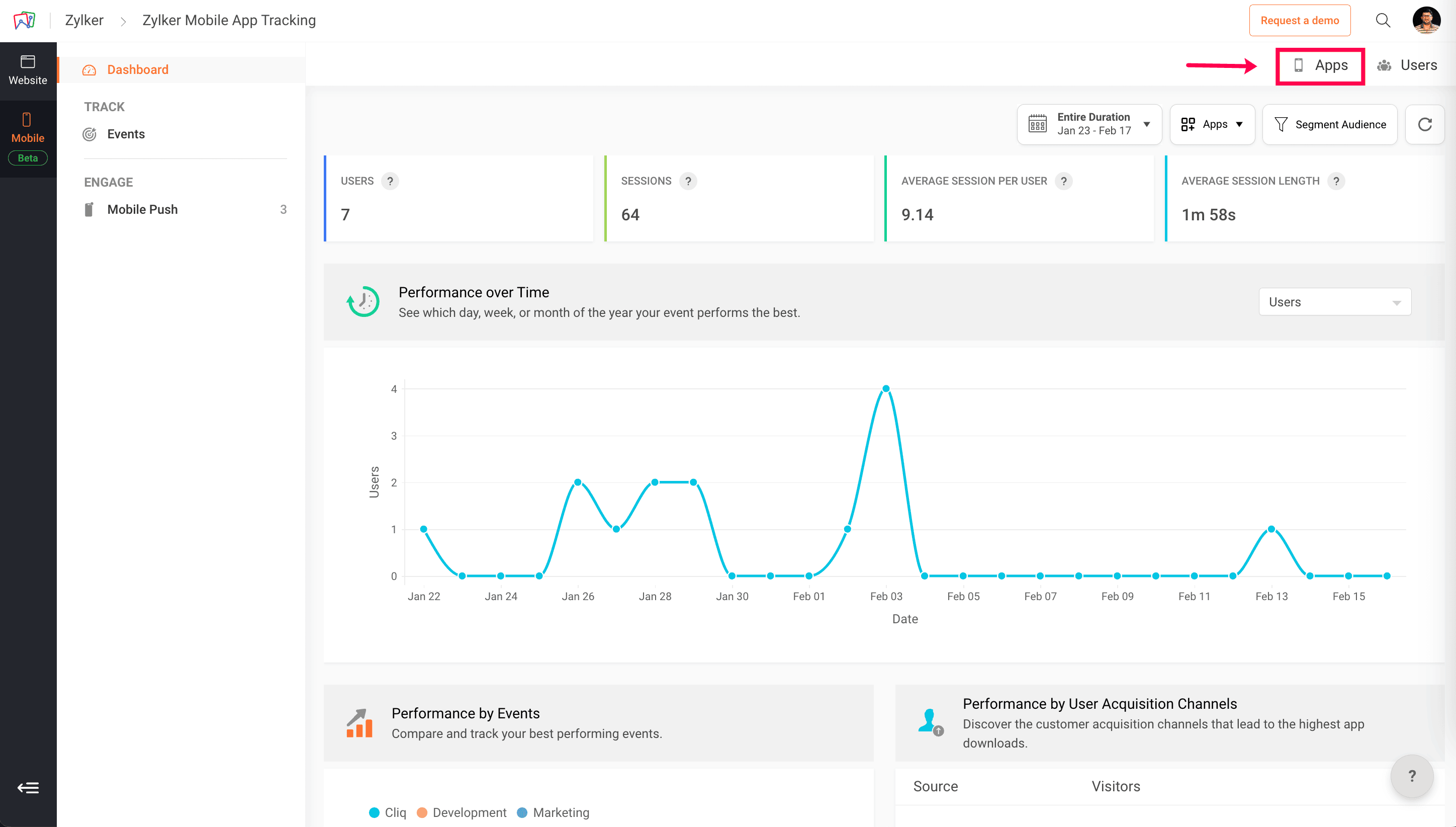 1: In the left pane of PageSense, click Mobile, then click Apps in the top-right corner.