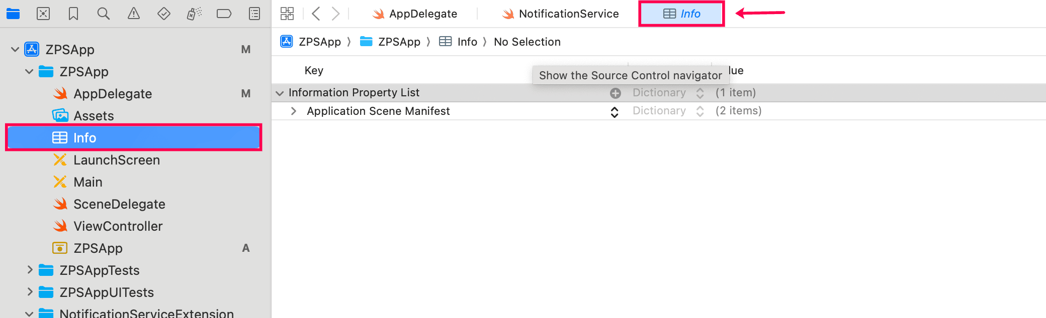 To associate your iOS app with your PageSense account, you need to add your PageSense credentials in the Info.plist file in your application. To do so: