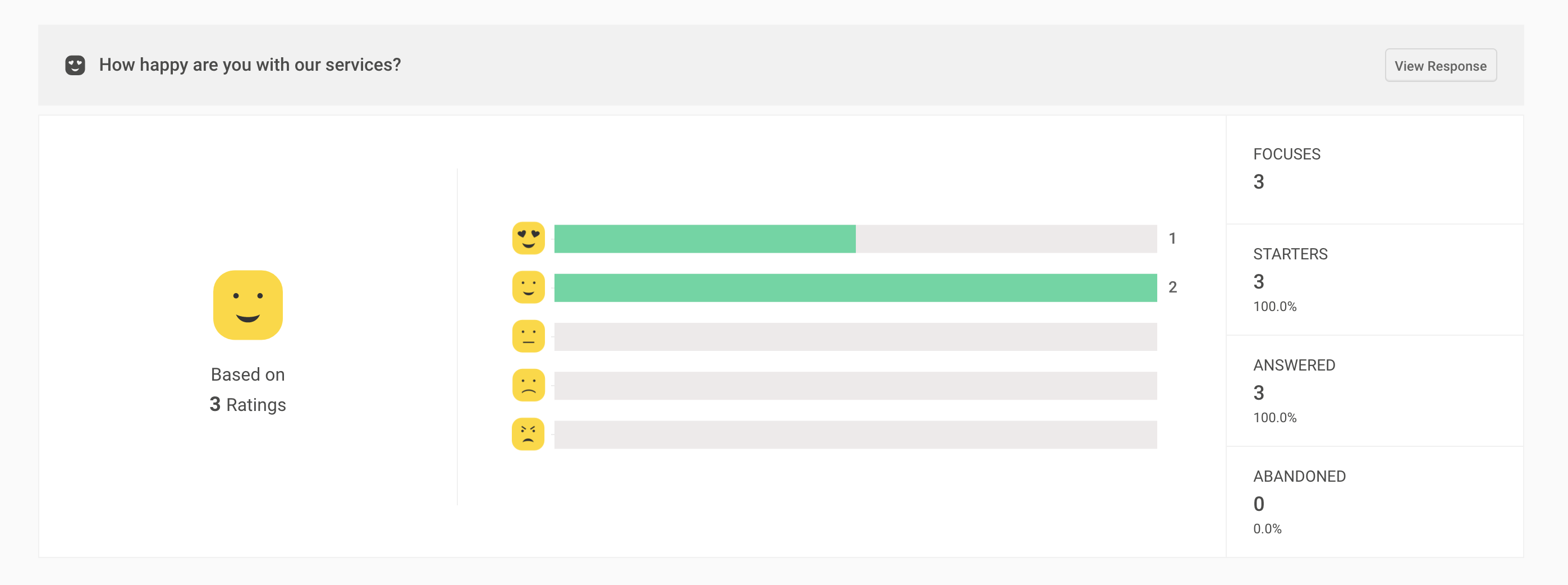 Smiley rating results: This rating scale is generated for smiley rating question type. A smiley rating poll allows your users to rate a product or service using five different emojis or smiley faces. This type of response helps to clearly measure the sentiments of users and easily brings out their real feelings towards your brand. Below is an example we created for a smiley rating poll with the voting results shown in the next image.