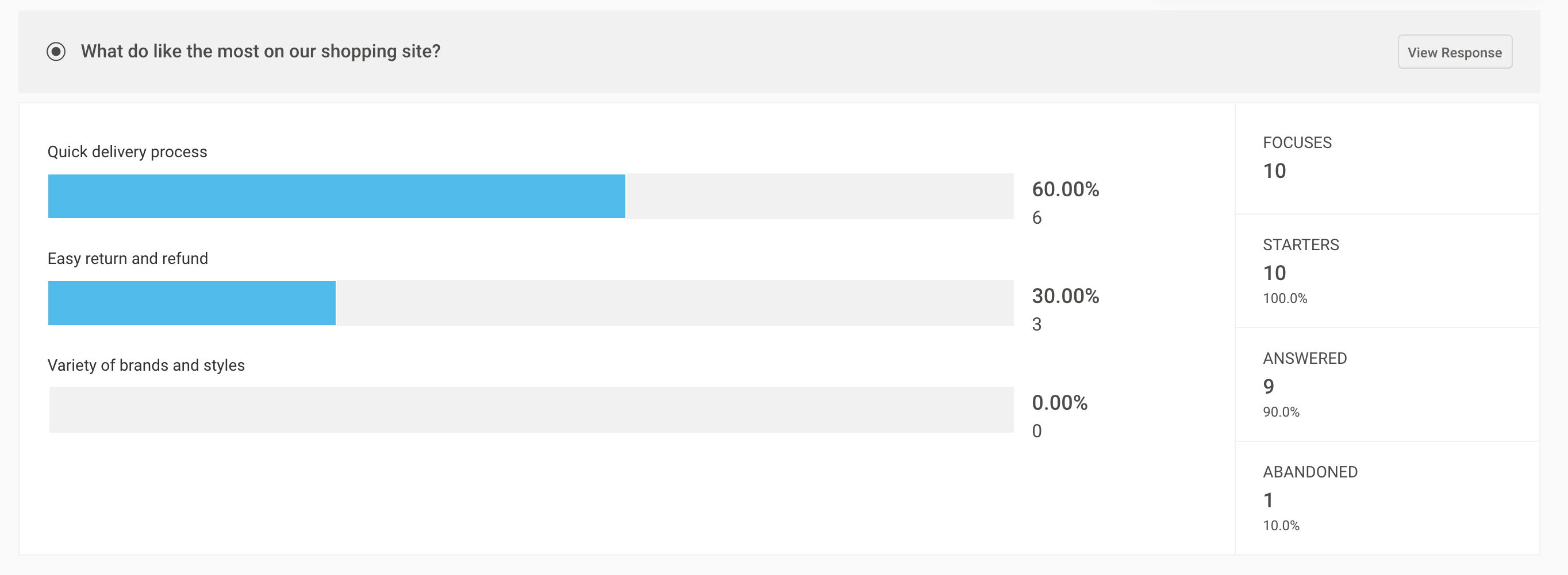 Abandoned: The number of times visitors skipped or left a particular question unanswered while interacting with the poll.