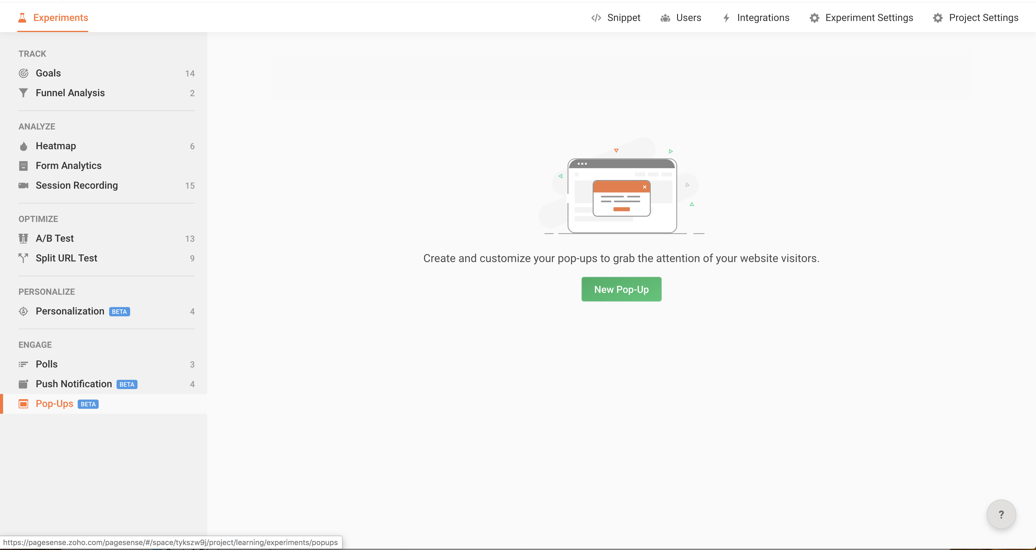 Important: Ensure that the Zoho PageSense code snippet is installed on all the URLs you want to show the pop-up on.