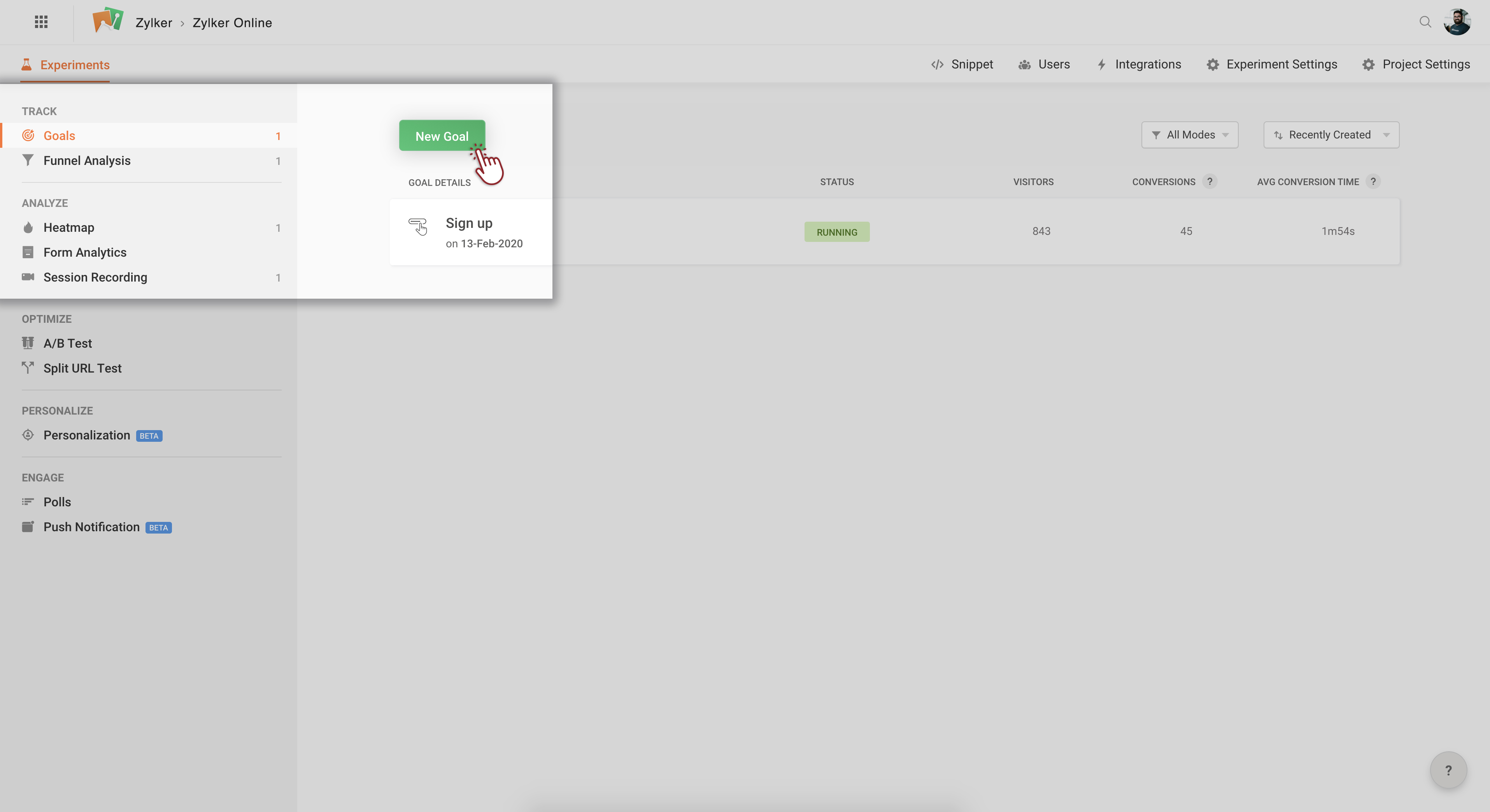 1. Click Goals on the left pane, then click the New Goal button.