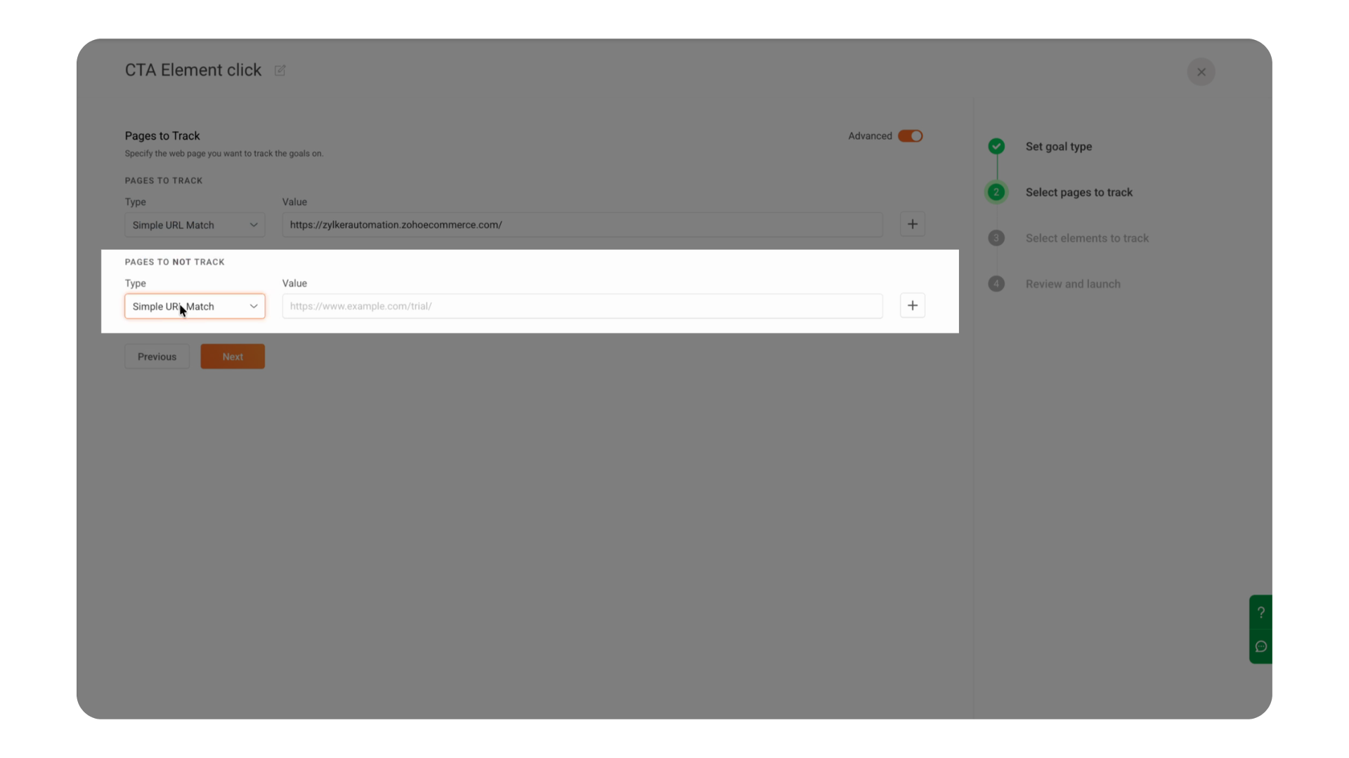 | Page Groups | When tracking a predefined group of URLs | Zylker – Marketing Campaign Pages | Tracks all URLs inside the defined group |