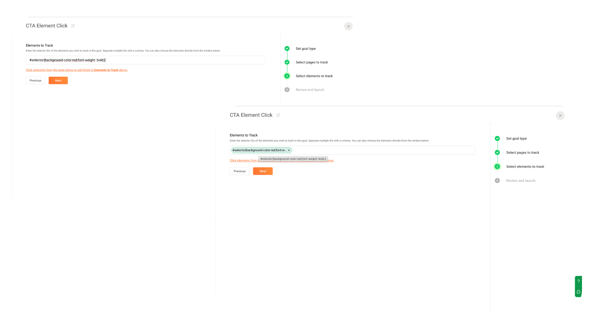 PageSense automatically generates the appropriate selector.