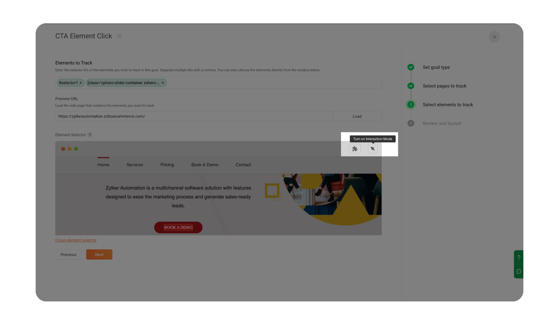 The Visual Element Selector allows you to select elements directly from the page without technical knowledge.