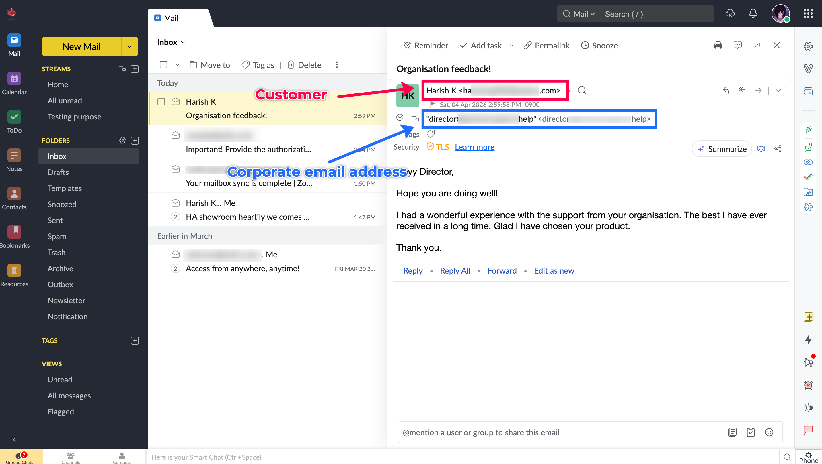 2. Email received in the Corporate mailbox