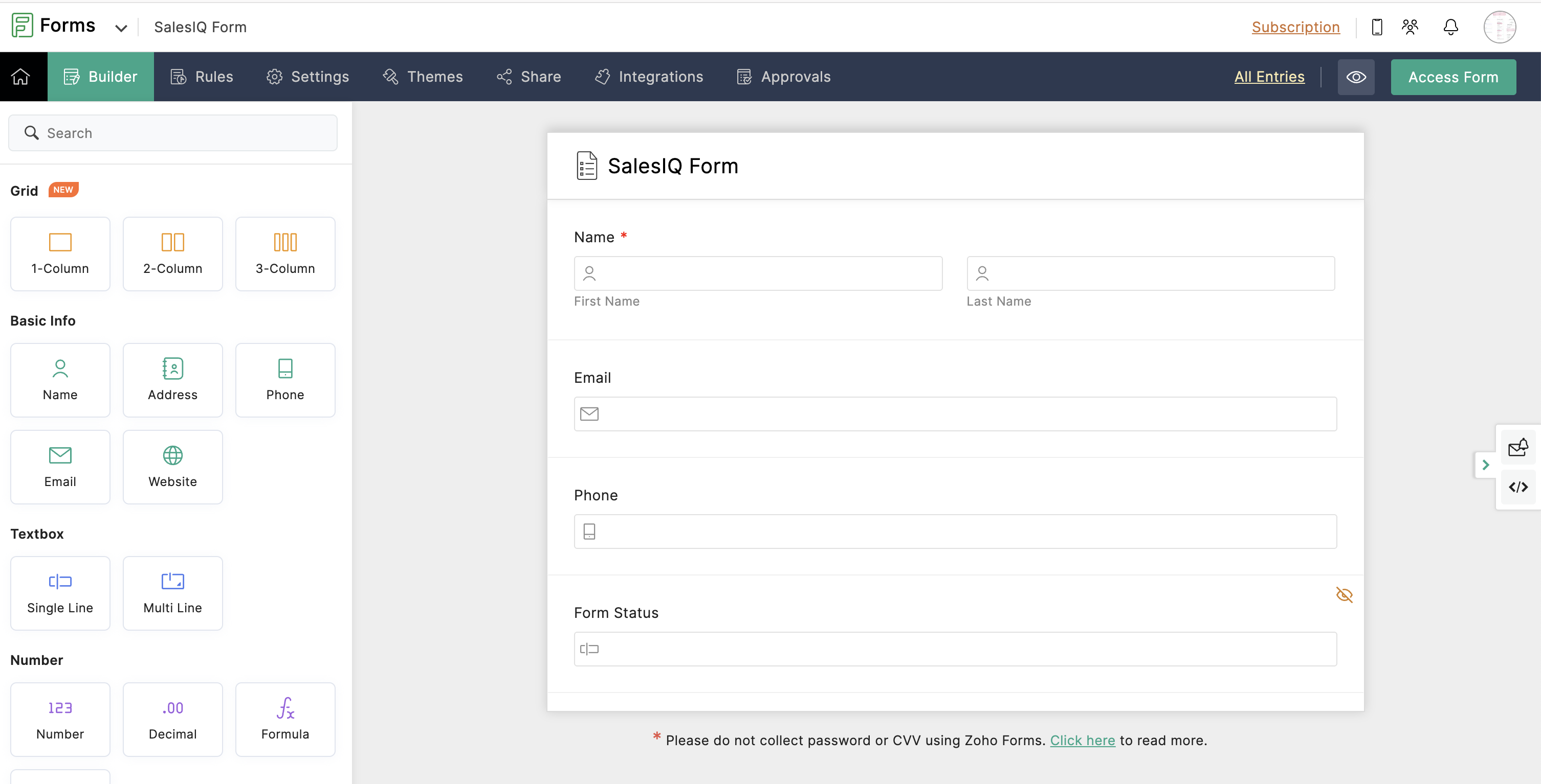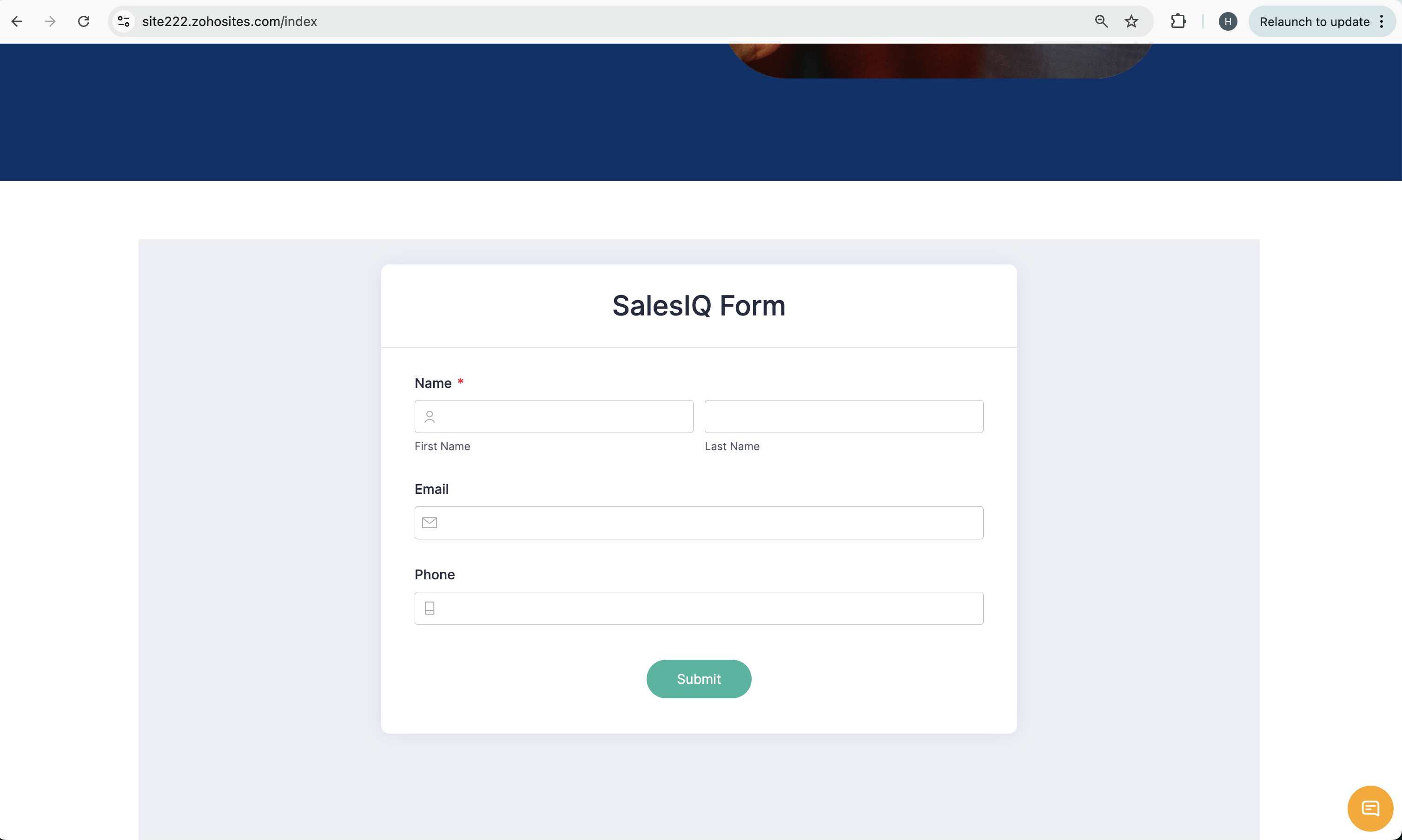 Create an attractive web-form and get the embed code of form. For example: We have used our native Zoho Forms which provides an advanced webform with vast features.