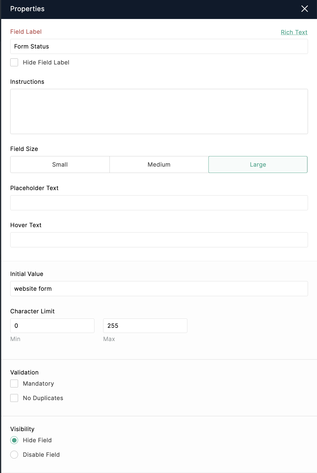 As an example, we have added a field (named - Form Status) and give a initial value as "website form". Also, hide the field in the form for visitors.