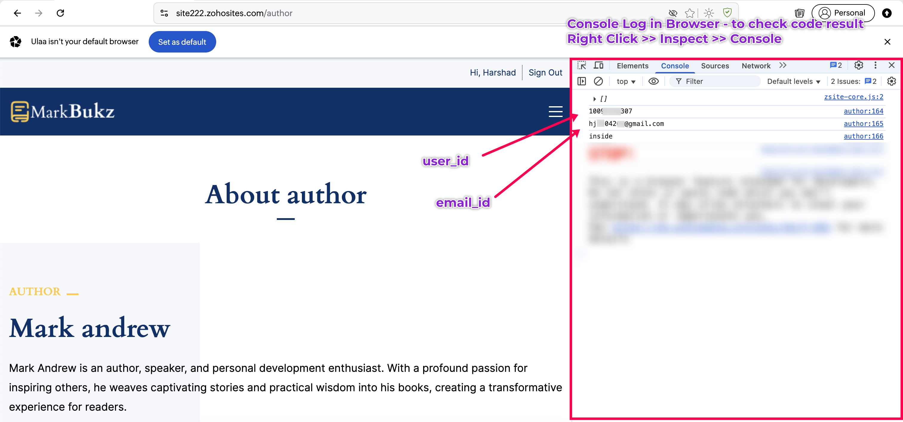 Code in Zoho Sites - to fetch logged-in user's detail