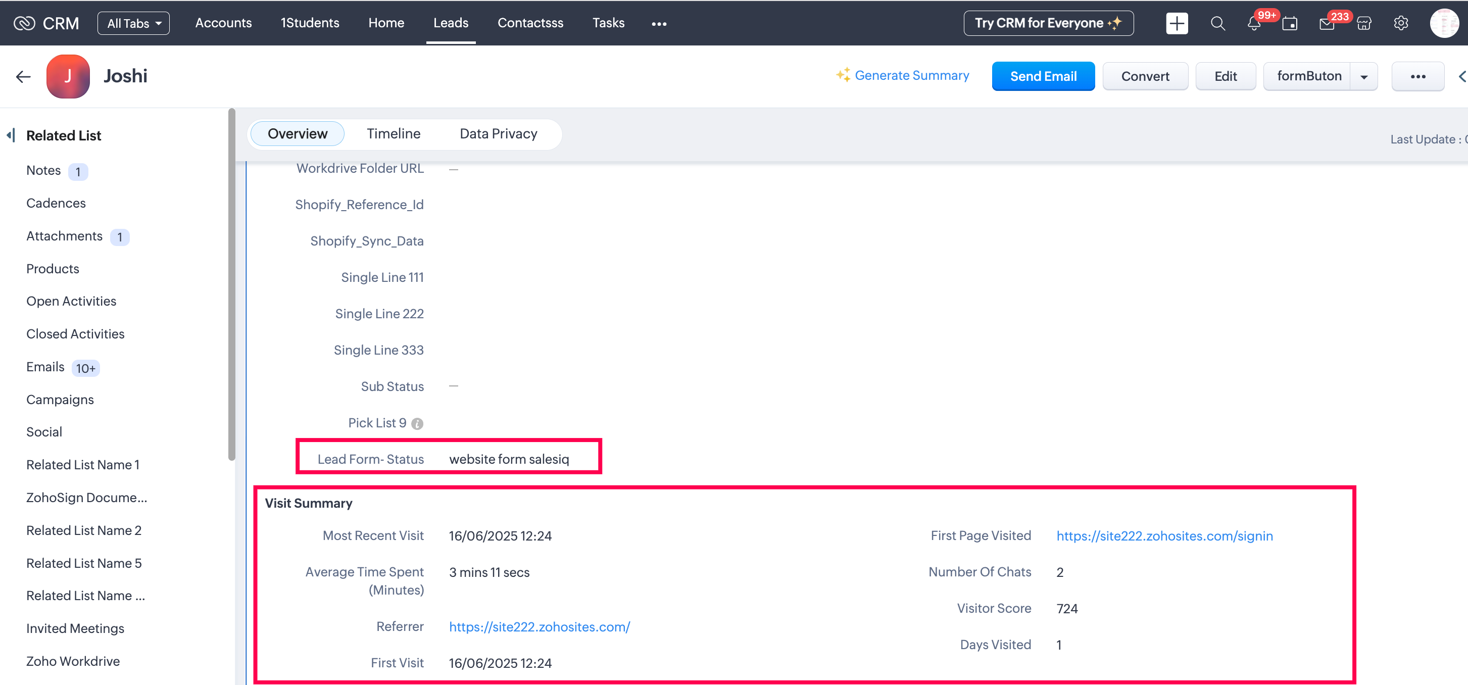 - $zoho.salesiq.visitor.info({"Lead_Form_Status": "website form salesiq"});