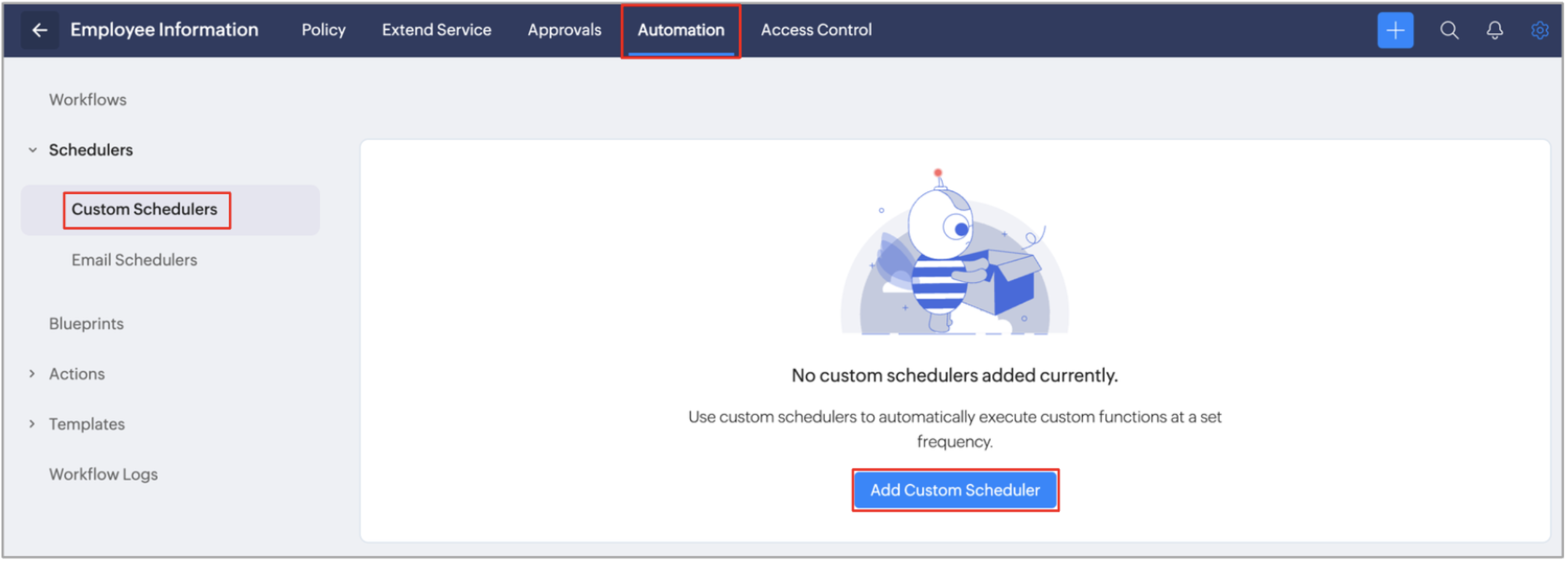 2. Click on Add Custom Scheduler.