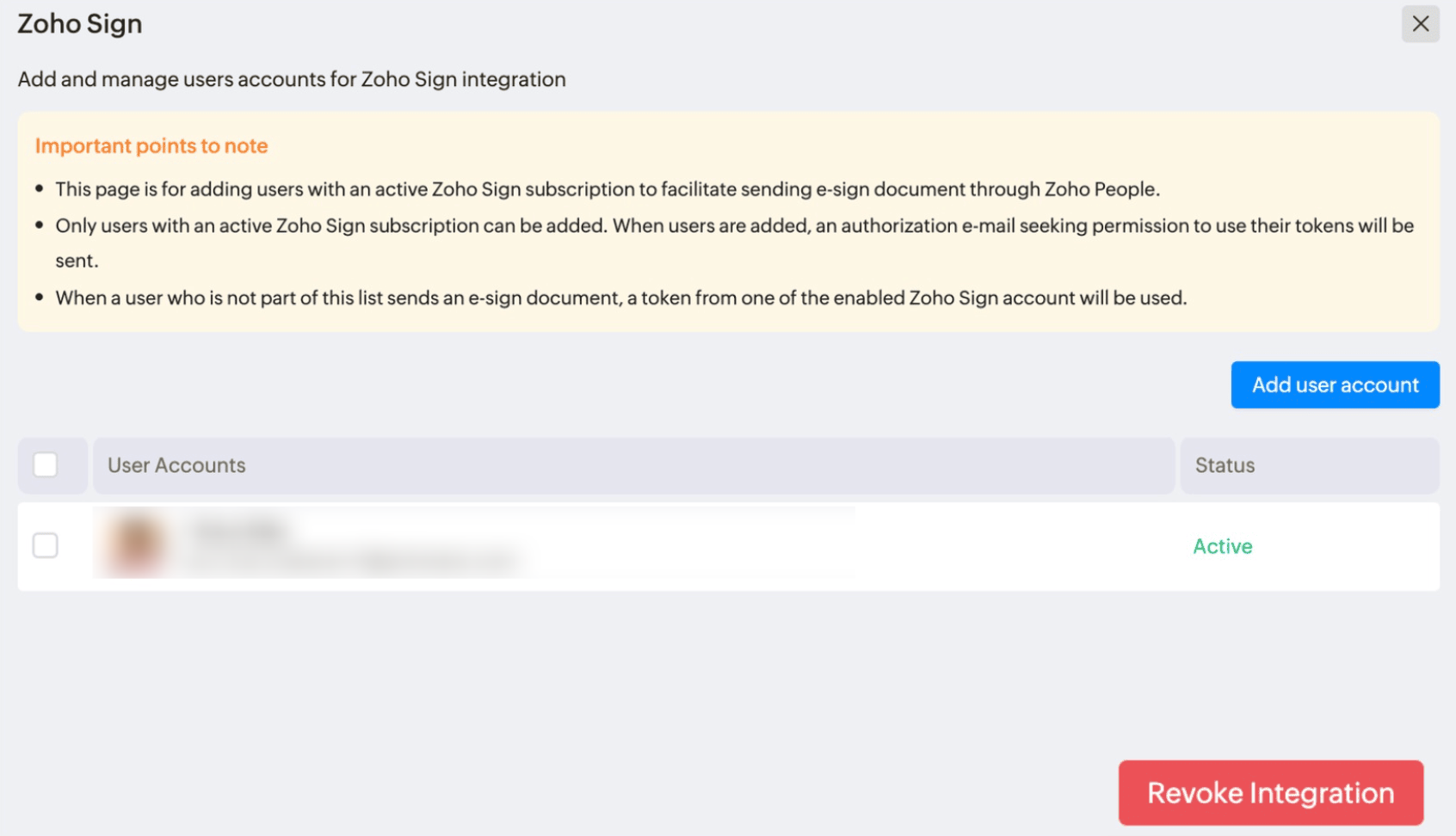 5. Ensure that the user listed in the Zoho Sign have Zoho Sign access.