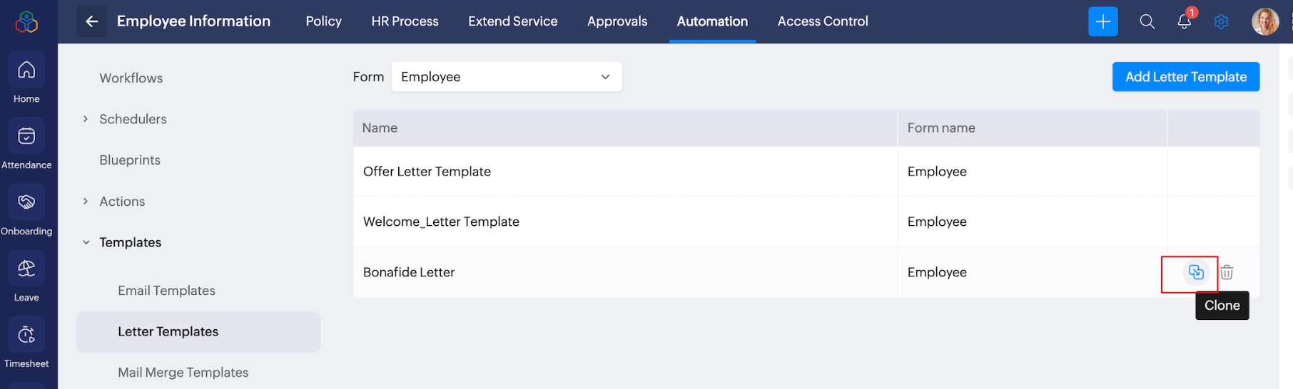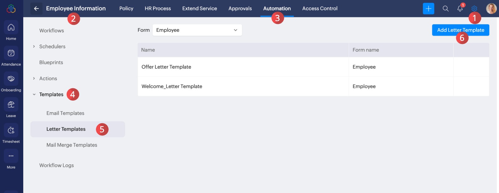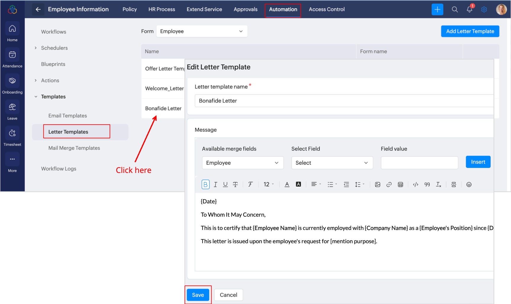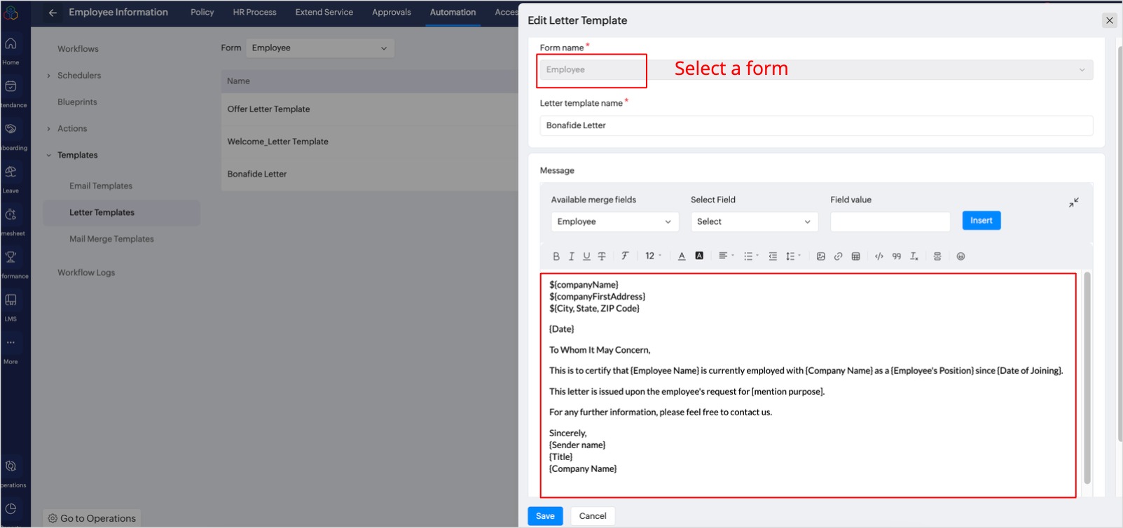 Letter Templates | Administrator Guide | Zoho People 5.0 Help