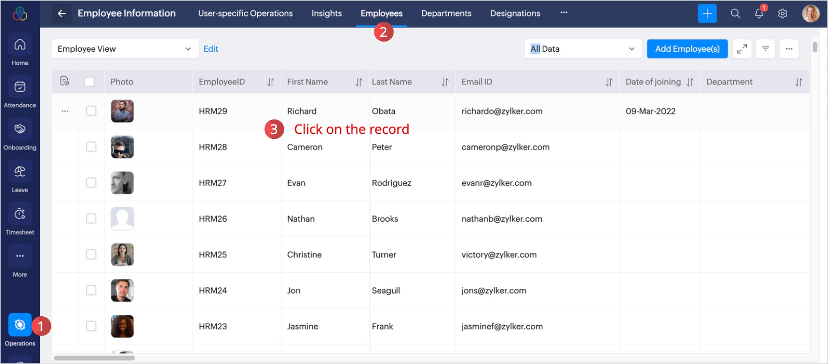1. Navigate to Operations > Select a Service (E.g. Employee Information).