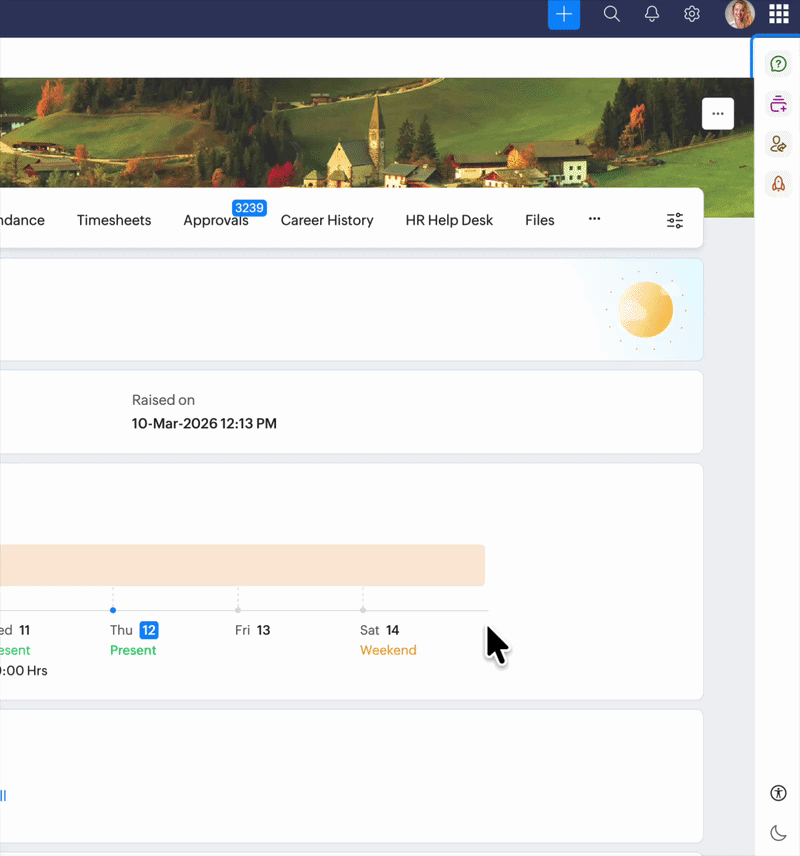 Quickly jump between key sections of Zoho People such as main content, header, and more. Use Z + T to access the navigator.