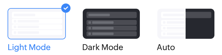 Choose from a preferred light or dark mode, or let the system decide based on time.