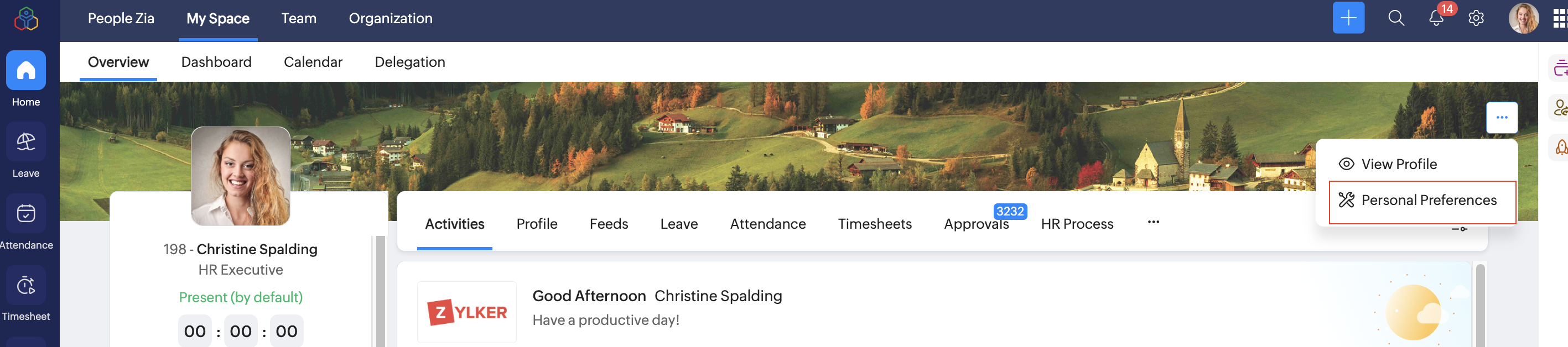 Zoho People language can also be changed from