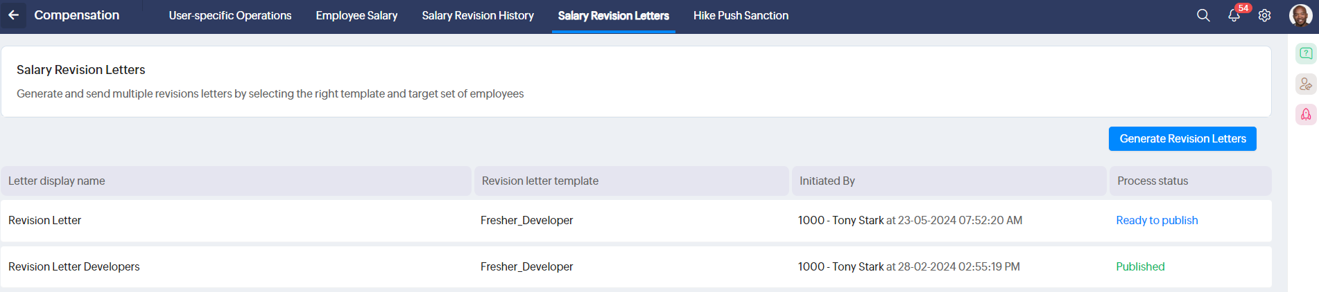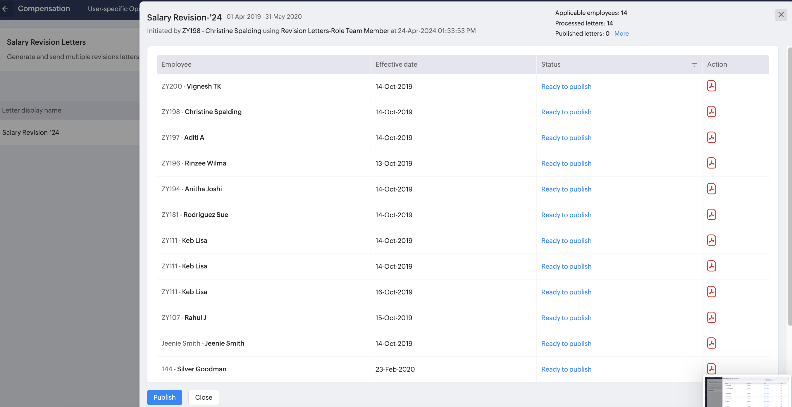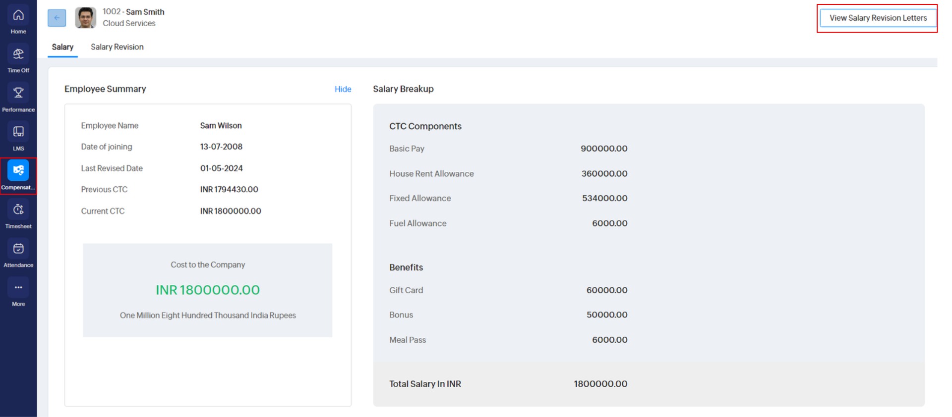 The published revision letters can be downloaded both here and by navigating to the Compensation user service in the left bar of Zoho People.