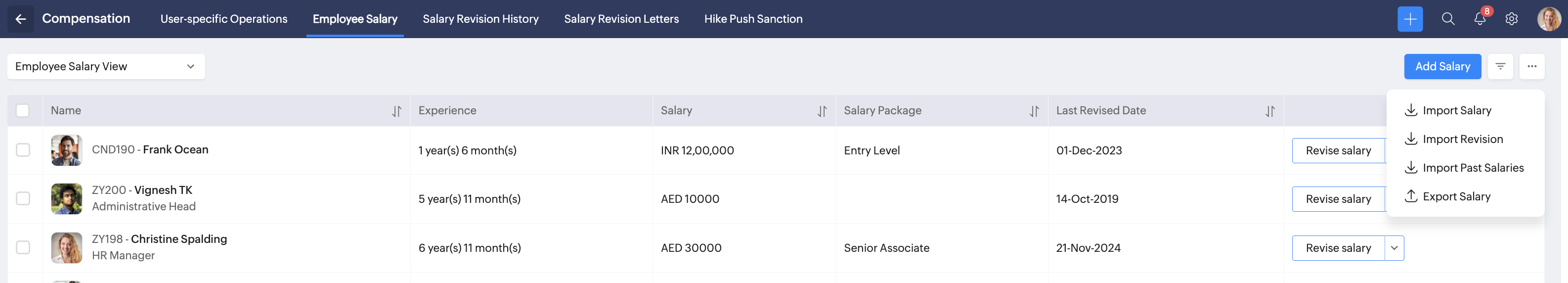 This option is useful for importing revision data for employees. A typical use case could be importing hike data for several employees at once or revising a specific salary component for several employees at once.