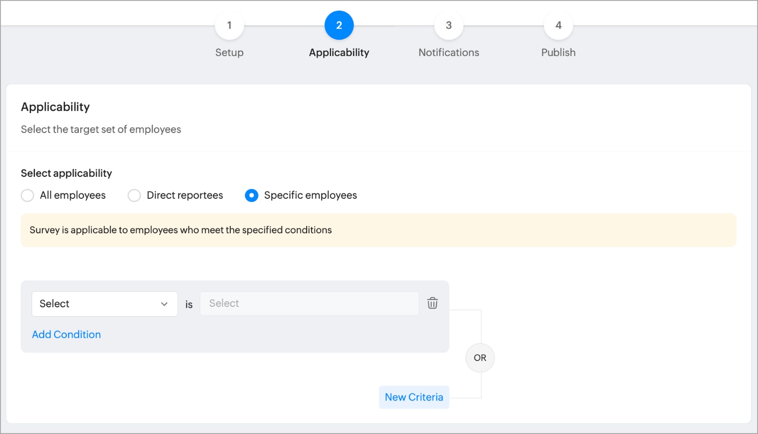 Specific employees: Employees who meet the specified conditions can take the survey.