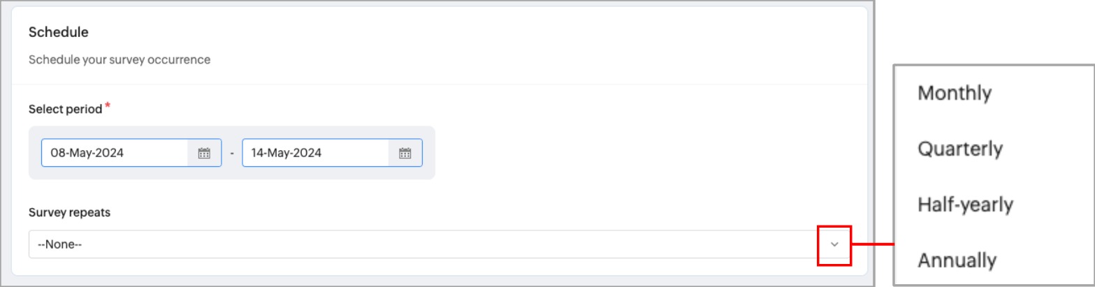 9. Schedule your survey occurrence and select repeats to repeat the survey occurrence.