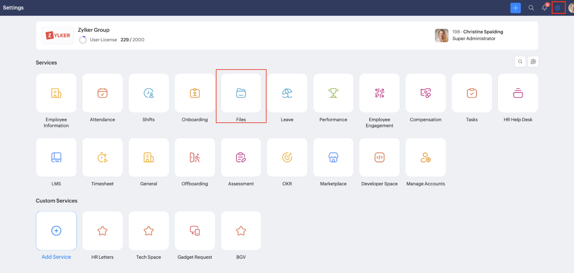 • Settings in Zoho People 5.0