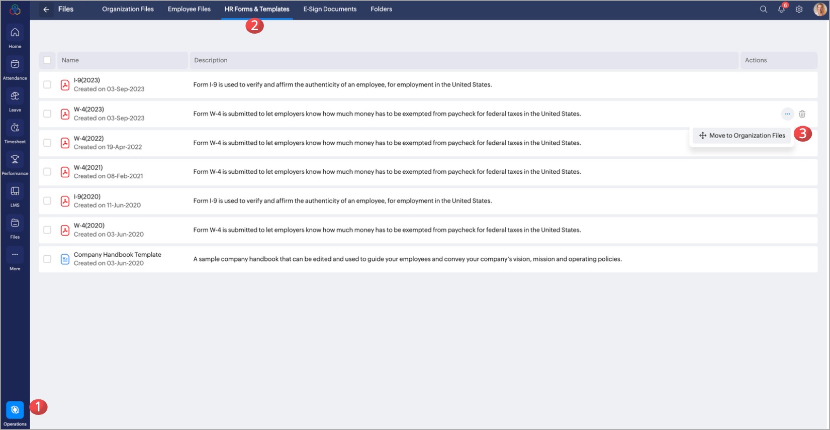 HR forms in Zoho People are statutory forms that are created by a government that serve as a model or a free form to be used. They usually meet all legal requirements and can be used without any textual changes. Zoho People populates the HR form based on your region that can be shared with your employees.