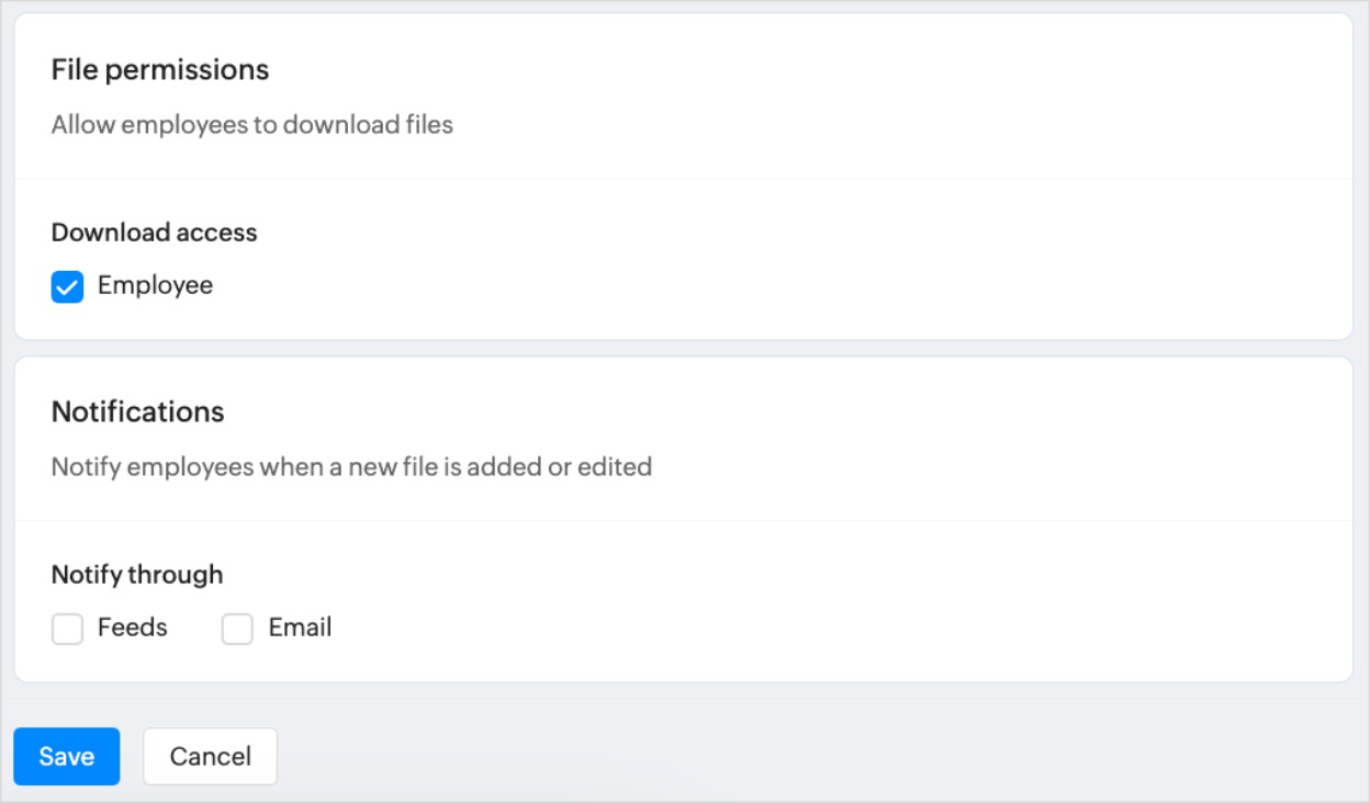 8. Select Employee check box under File Permissions if you want the applicable employees to be able to download this file.