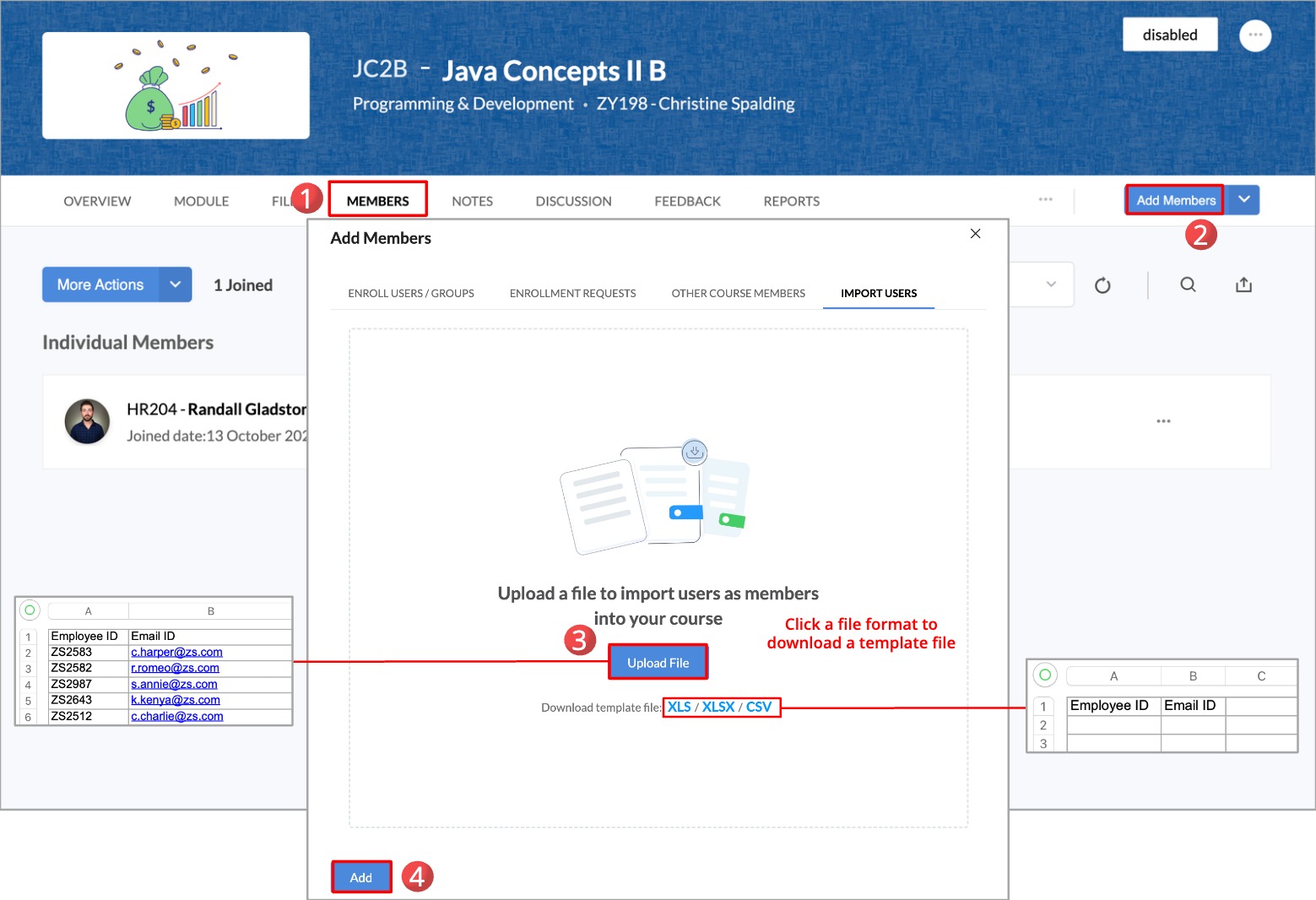 1. Open any course and go to the Members tab.