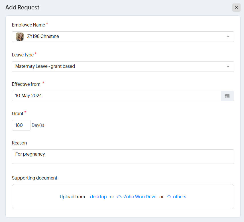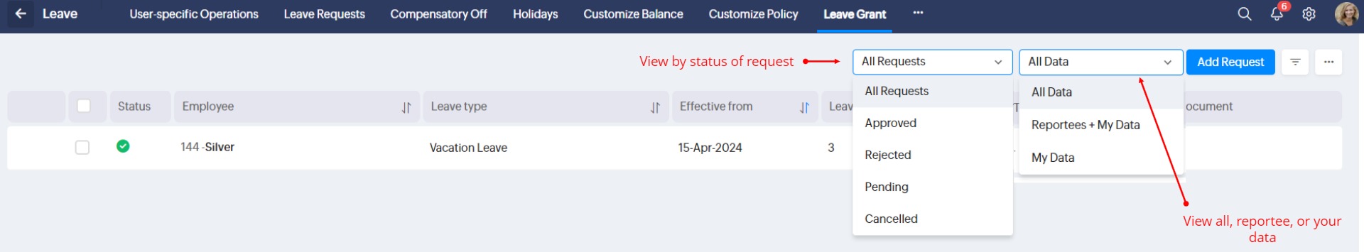 Manage Leave Grant Requests in Zoho People | Administrator Guide | Zoho People 5.0