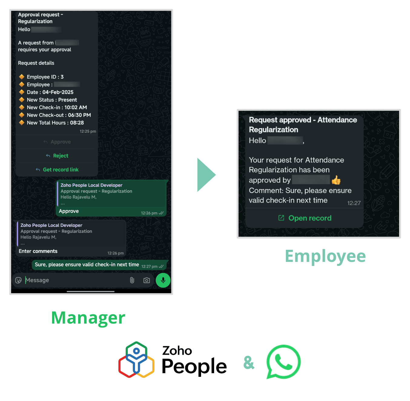 Employees will be immediately notified on WhatsApp when their requests are approved or rejected. - Saves time for everyone