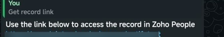 NOTE: Clicking on the Get Record Link option displays the access URL for the corresponding record in Zoho People. You will be required to be signed in to Zoho People to view the record using the link.