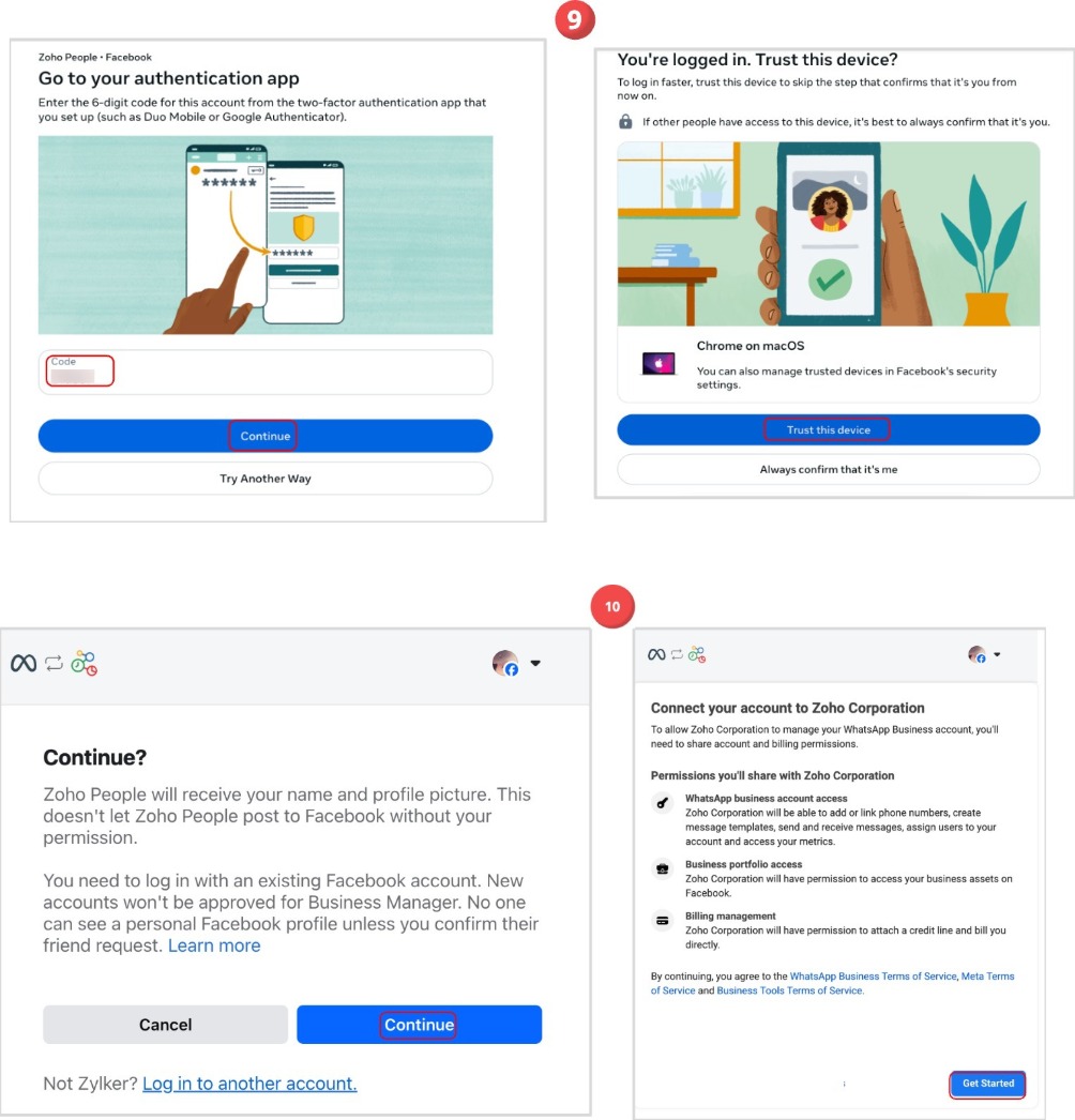 Get started to proceed connecting Zoho service with WhatsApp (through Facebook).