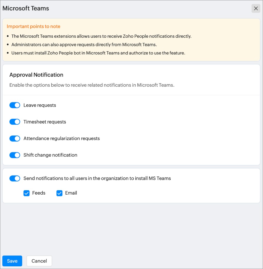 Zoho People for Microsoft Teams | Administrator Guide | Zoho People 5.0 Help