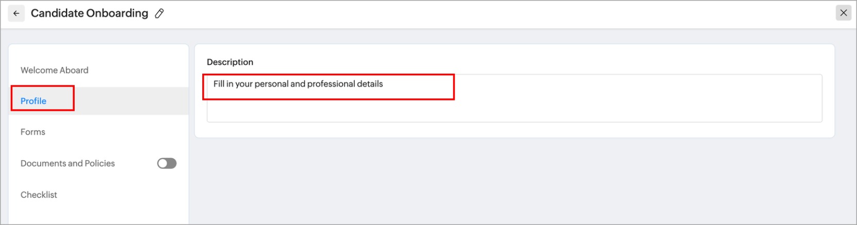 Enable the Documents and Policies tab to share the onboarding documents with the candidates that are to be signed, read, and accepted during their onboarding process.