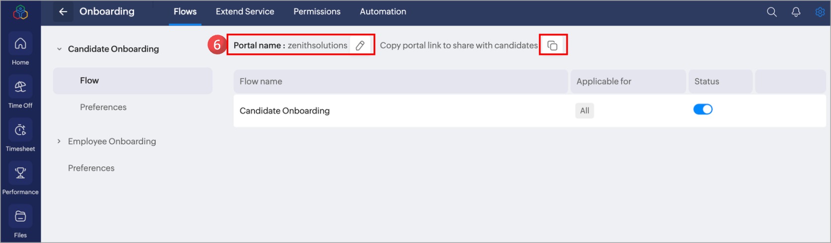 Click Copy portal link to share with candidates, to copy and share updated Candidate Portal website URL to your Candidates for whom the onboarding is initiated.