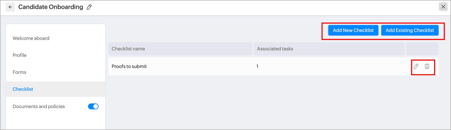 Checklist in Candidate Onboarding are limited to administrator use and are not available to candidates.
