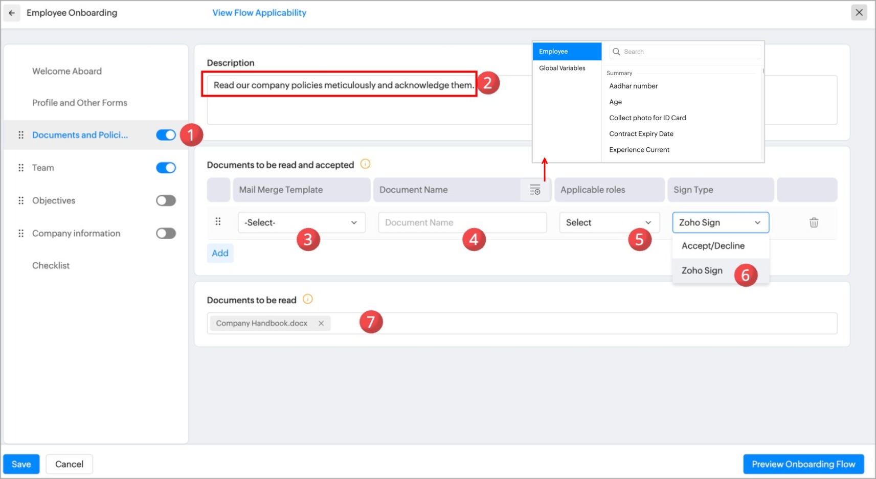 - After adding the flow, set up the onboarding process. For more details, refer to Set Up Employee Onboarding Flow.