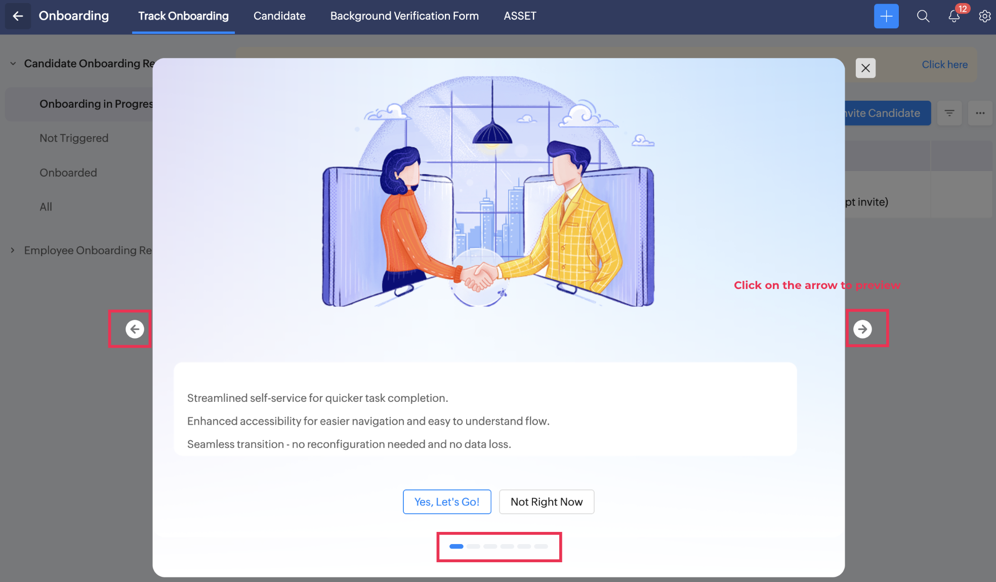 5. Click the arrow to preview the new onboarding portal.