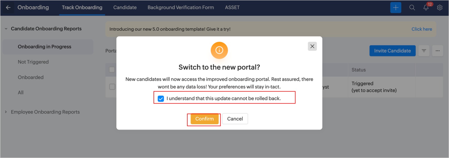 The new onboarding portal design for both candidate and employee onboarding will be updated. No reconfiguration is required, and all existing data remains secure and intact.