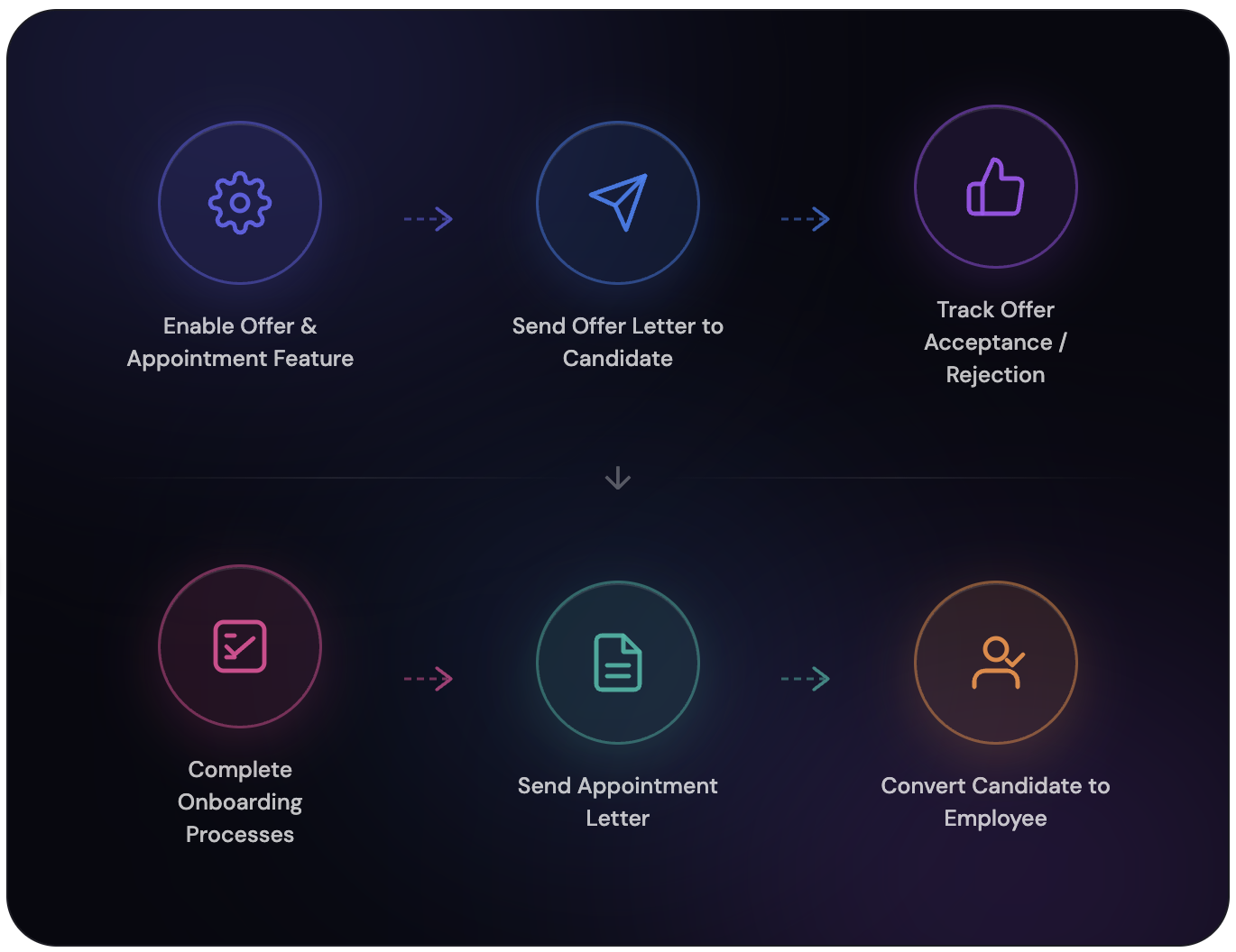⬡ If a candidate rejects an offer, a new offer can be generated if required.