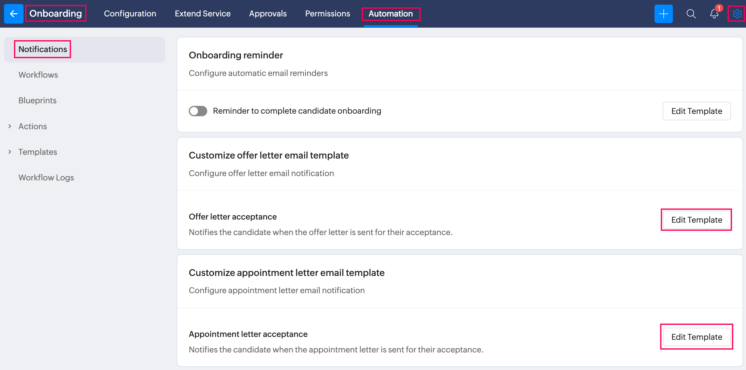 - Navigate to Settings > Onboarding > Automation > Notifications