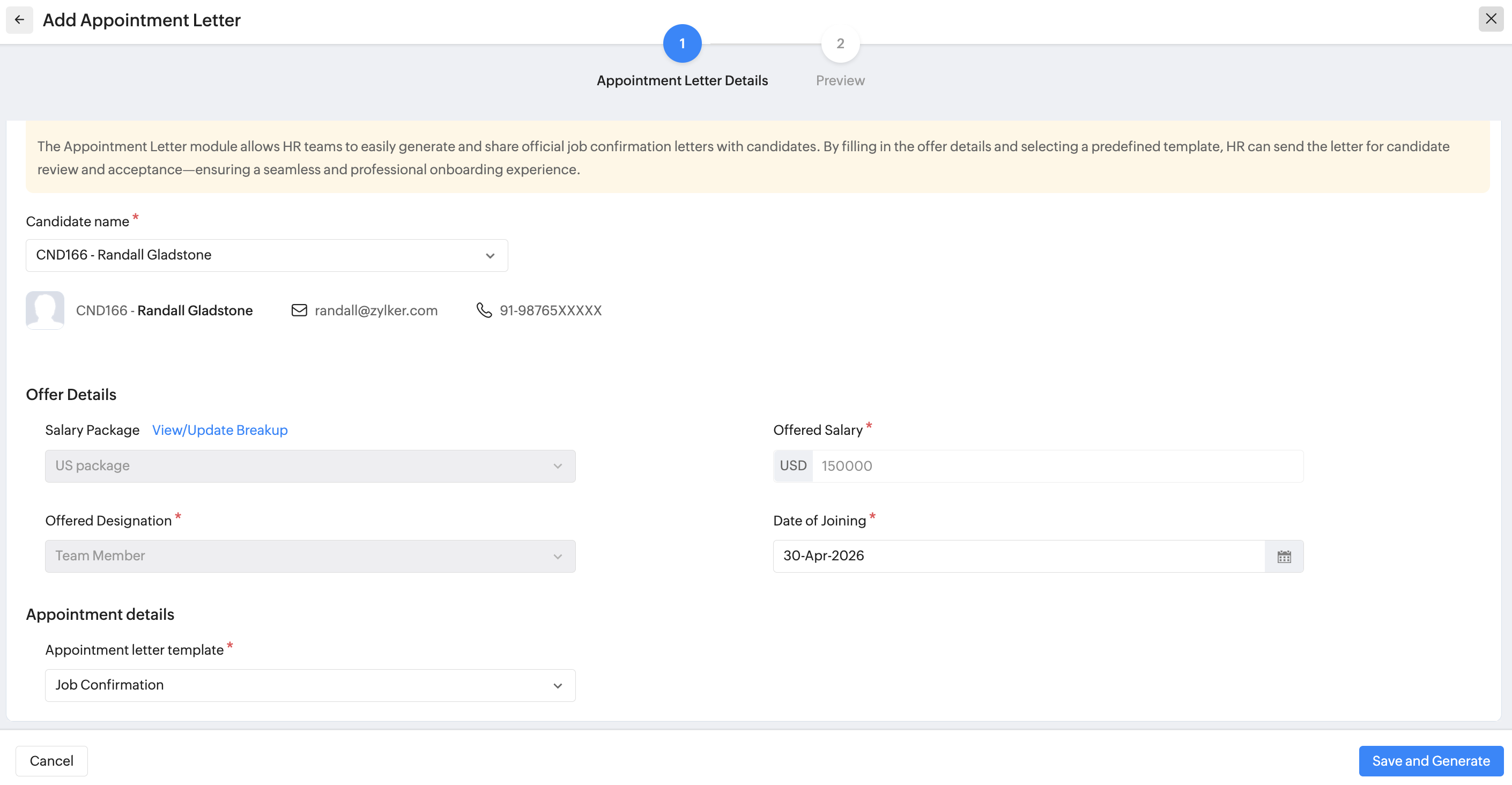 Generate and Send Appointment Letters